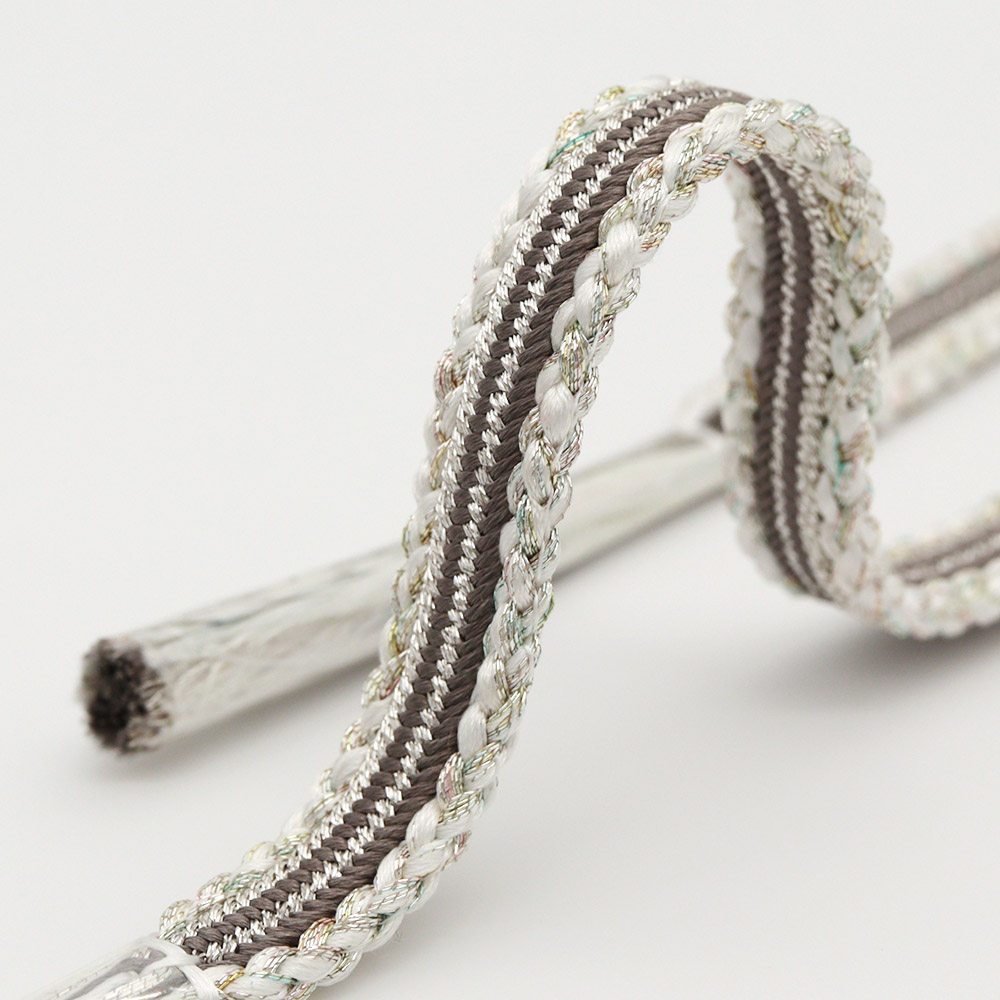 銀糸を絡ませた灰色のセンターラインが引き締め役となり、単調になりすぎないデザインに。