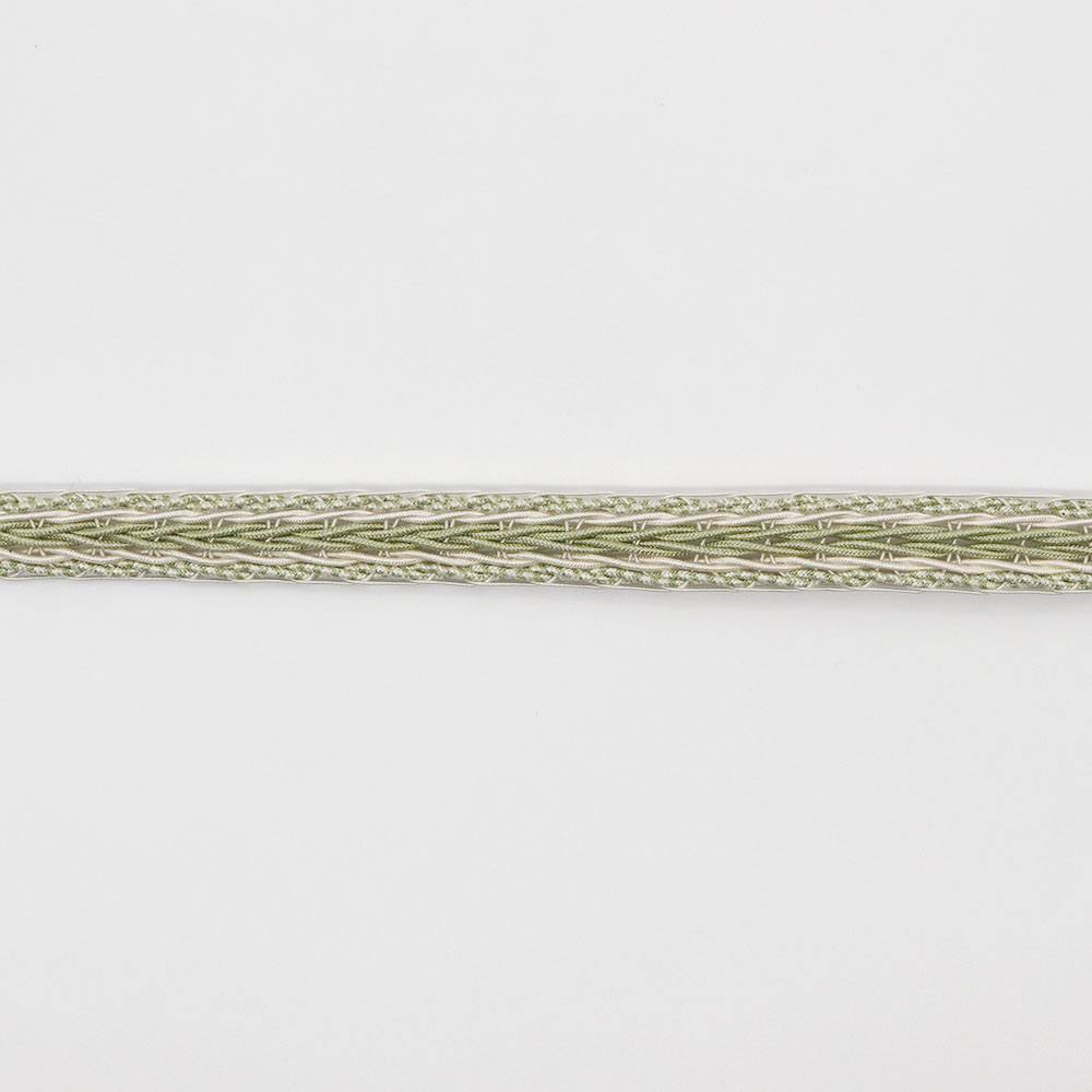 センターに向かって組まれた、三つ編みのようなデザインの一本。白の細線を2本組み込むことで、シンプルカラーながらアクセント感もある賑やかな仕上がりに。