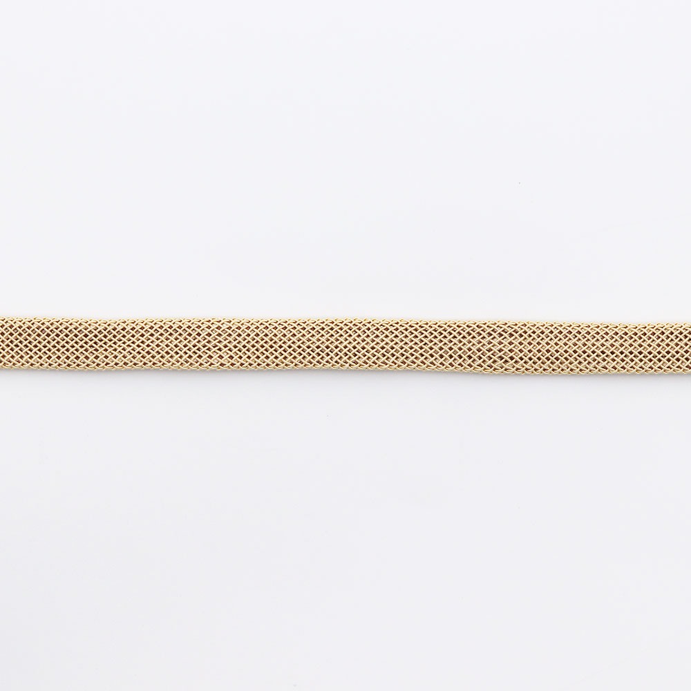 異なる組み目で表現したラインを片胴にのみ組み上げた、平唐組みの一本です。