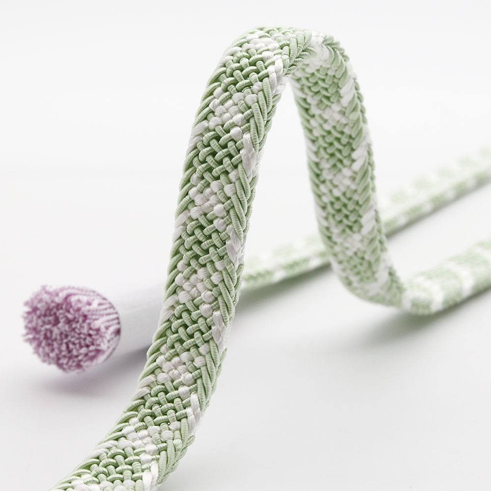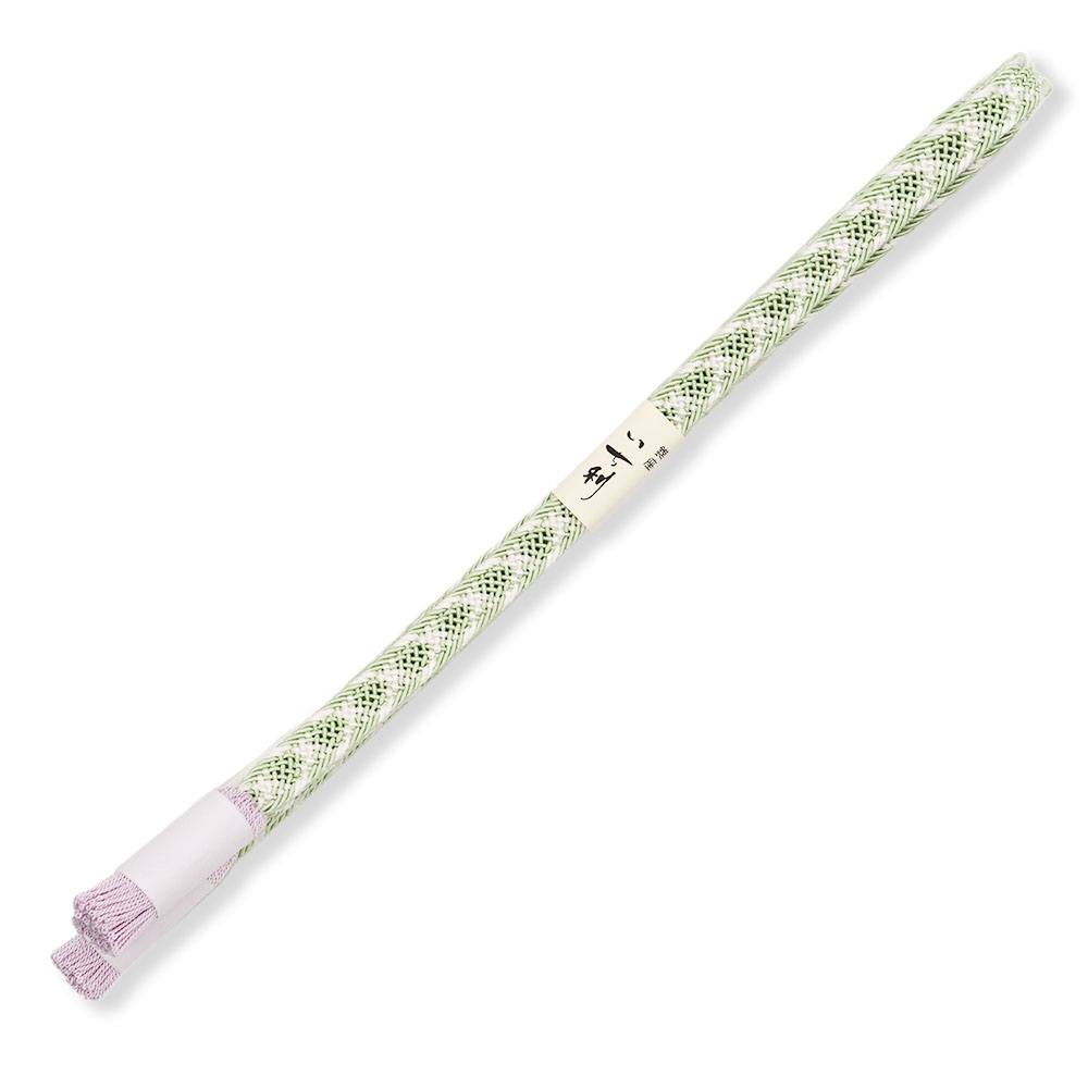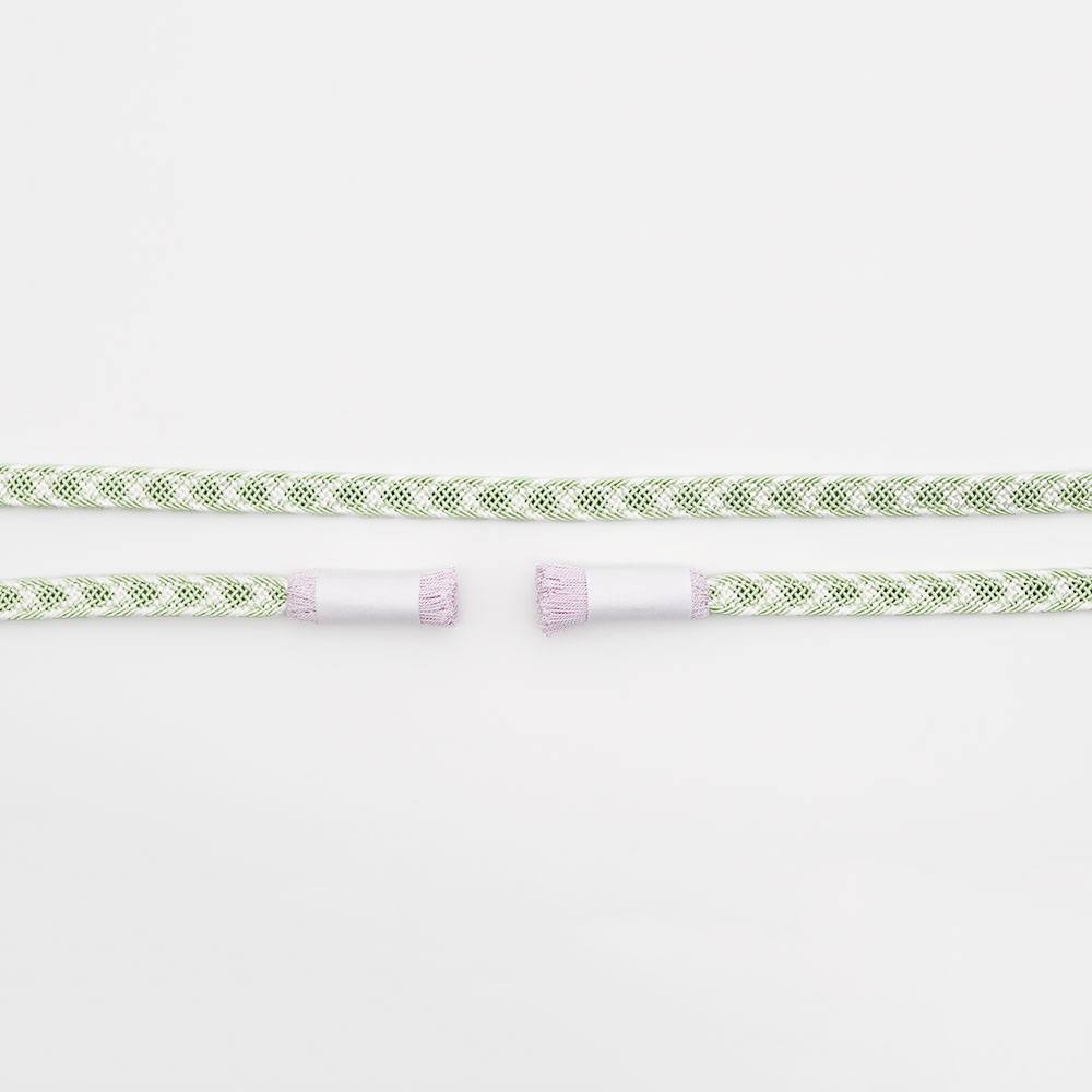 薄緑×白に、房の薄紫が、品のある柔らかな色彩に。ざっくりと組み上げた仕上がりもあいまって、はんなり優しく涼しげな着姿をこの一本で演出します。