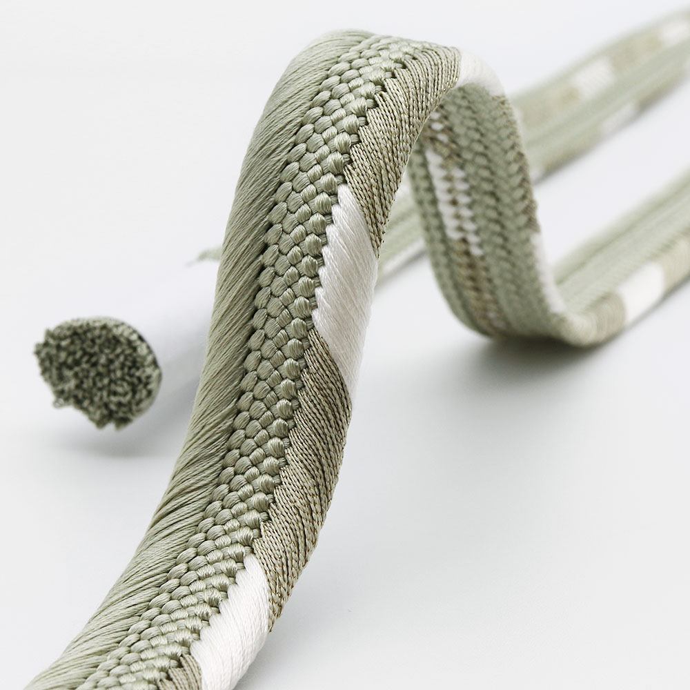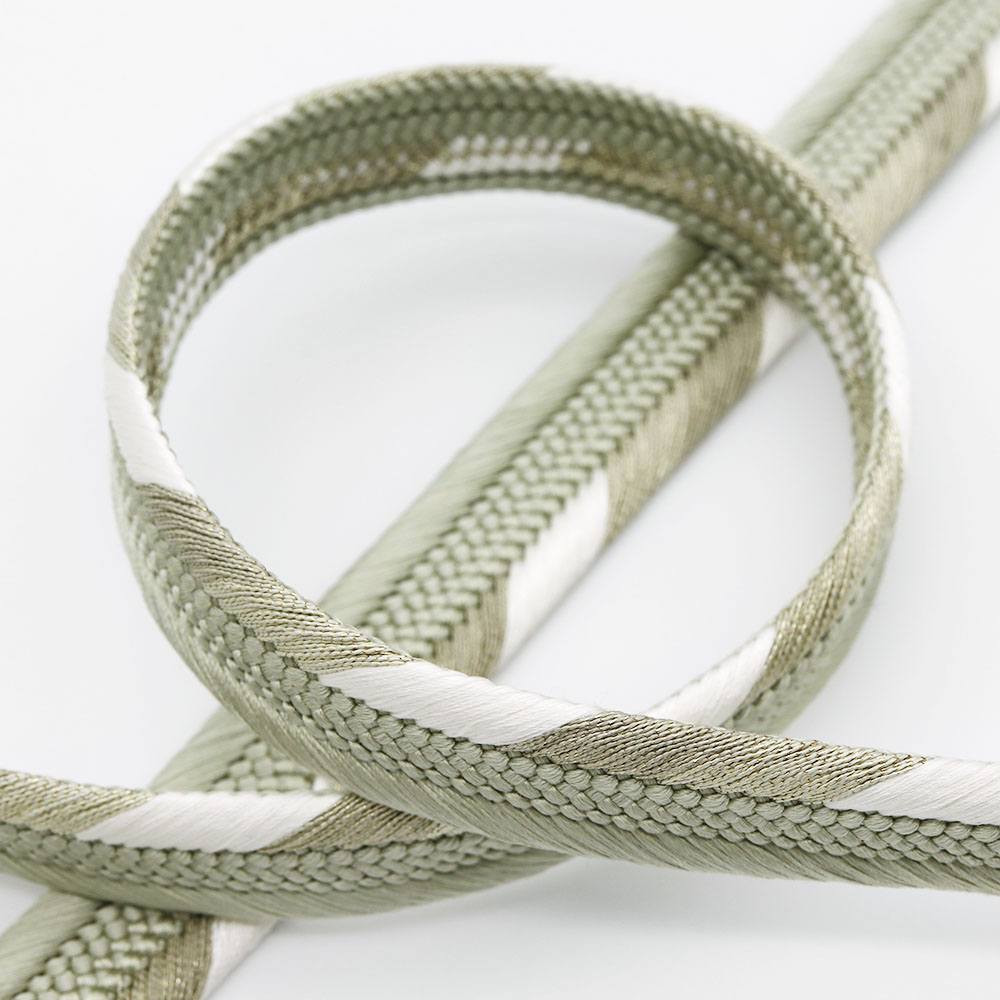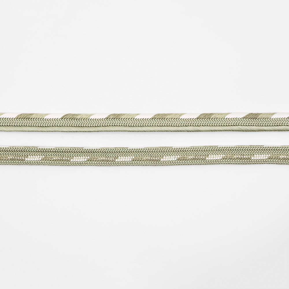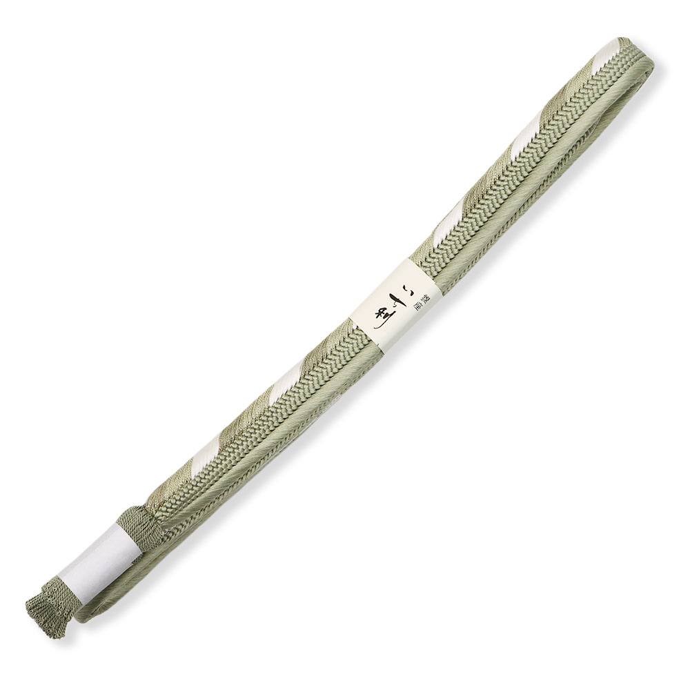 立体感のある組み目が特徴の平組みに、片胴に白のアクセントを加えたシンプルなデザイン。薄緑×白のツートンカラーが帯周りのアクセントや引き締め役として活躍してくれるでしょう。