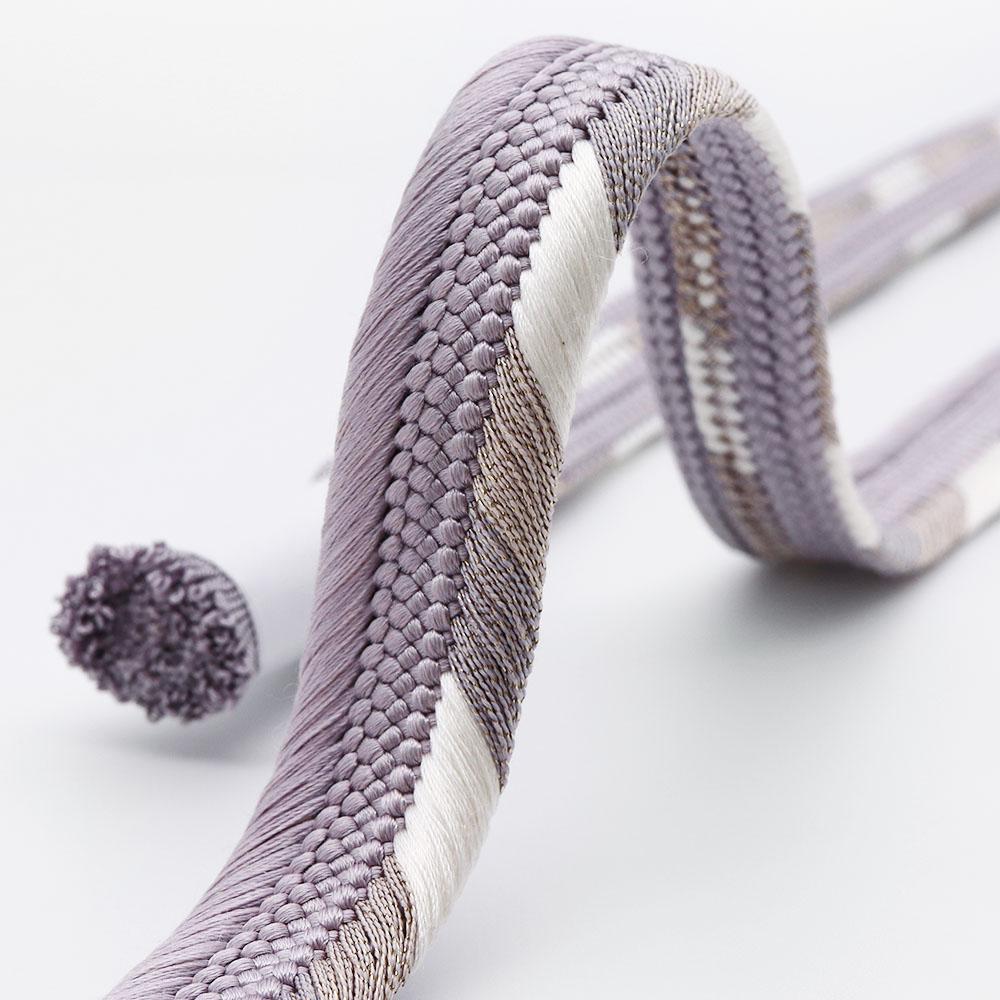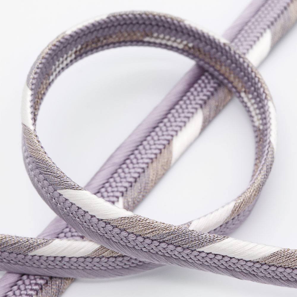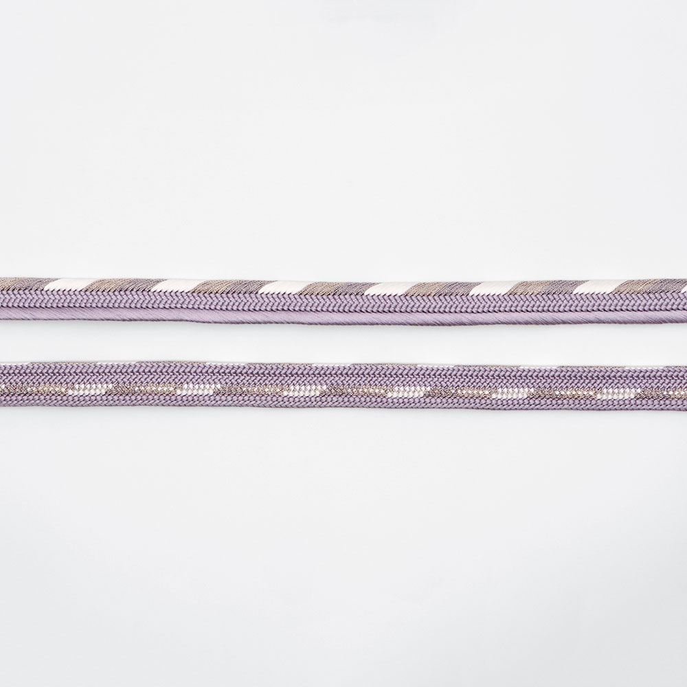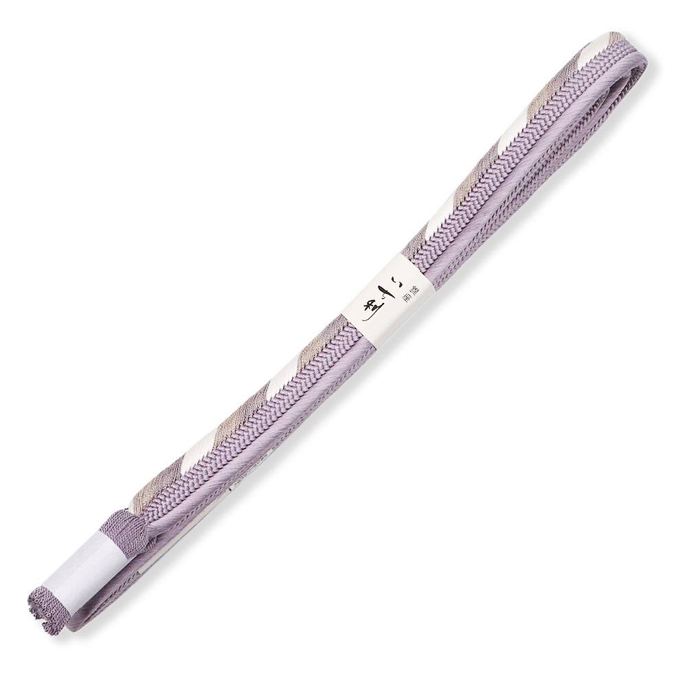 立体感のある組み目が特徴の平組みに、片胴に白のアクセントを加えたシンプルなデザイン。薄藤×白のツートンカラーが帯周りのアクセントや引き締め役として活躍してくれるでしょう。