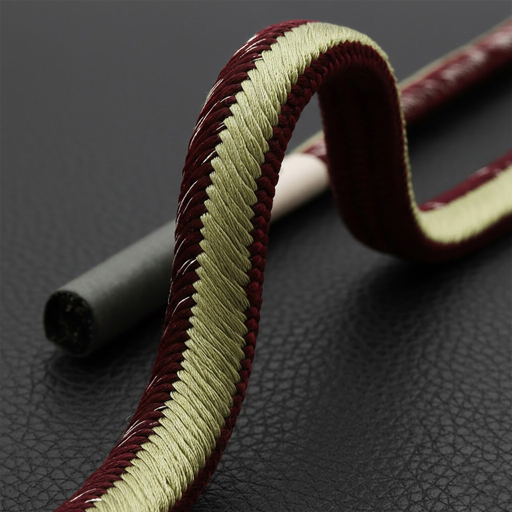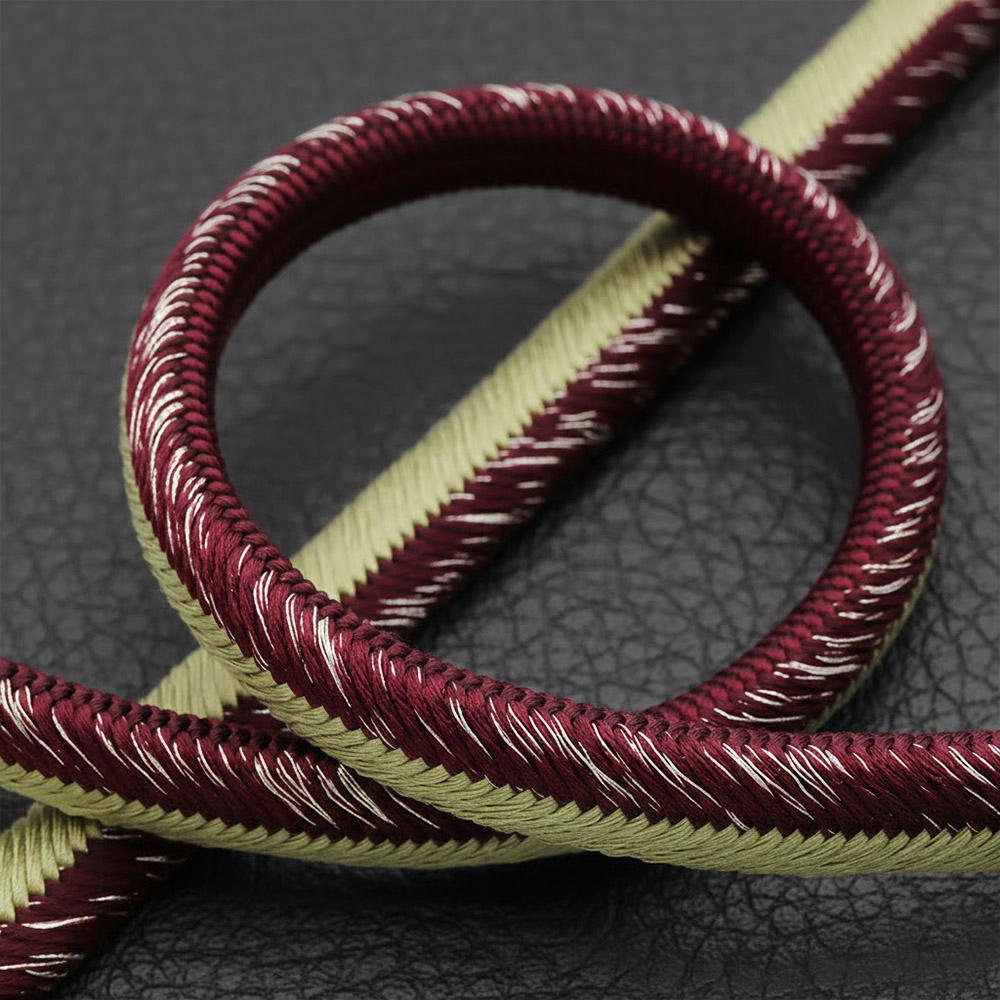 洋角組みの美しさはそのままに、しっかり肉厚な角朝組みを裏側に合わせることで丈夫さと結びやすさを両立。しっかり手に馴染み、ぎゅっと結んだらしっかり帯元に留まります。