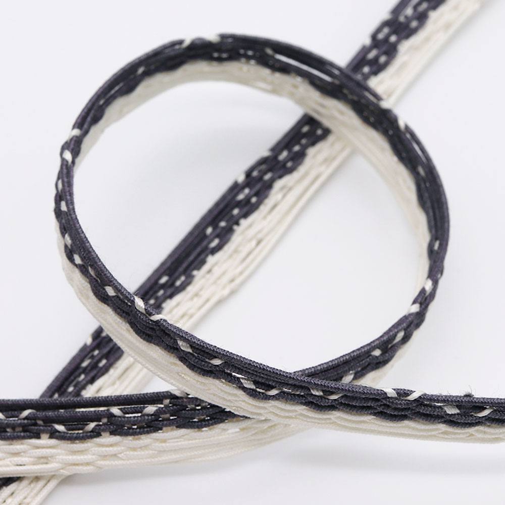 こっくり落ち着いたカラーリングがオトナな一本です。片身を白にすることで爽やかさを持たせつつ、両端にかけてあえて組み上げずに遊ばせた組紐があることで、透け感がより強調されたデザインに