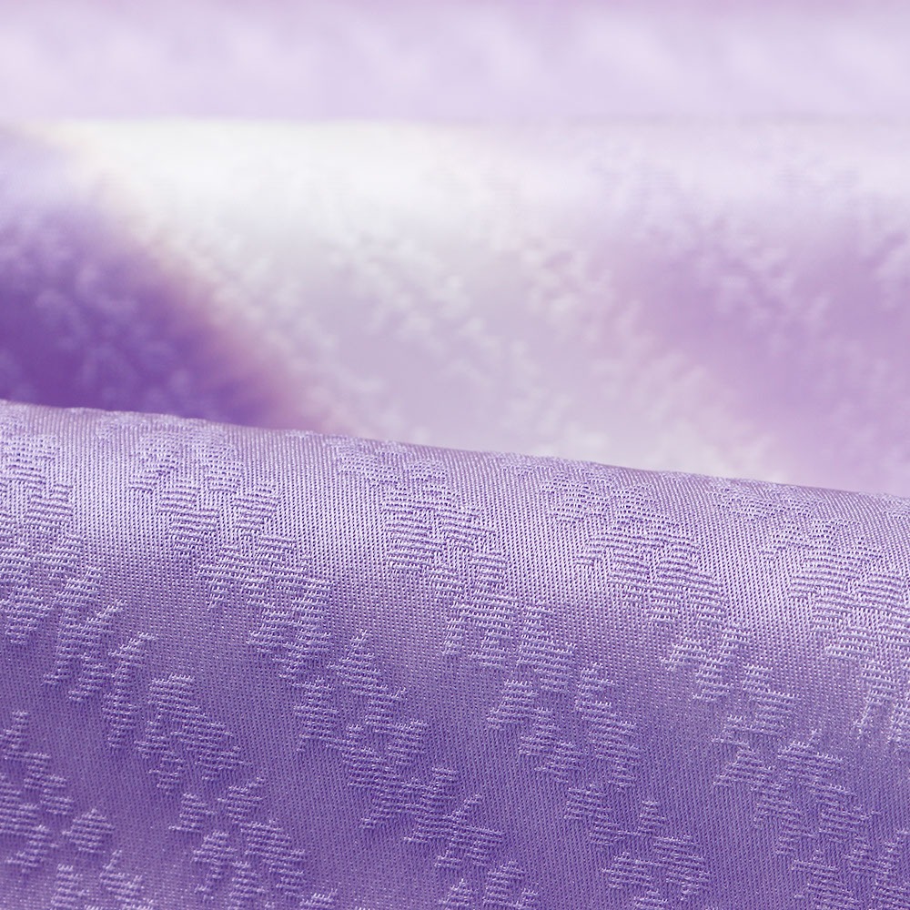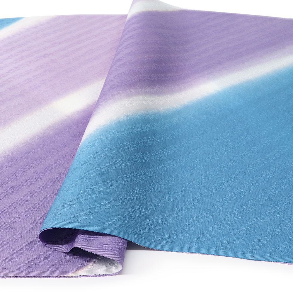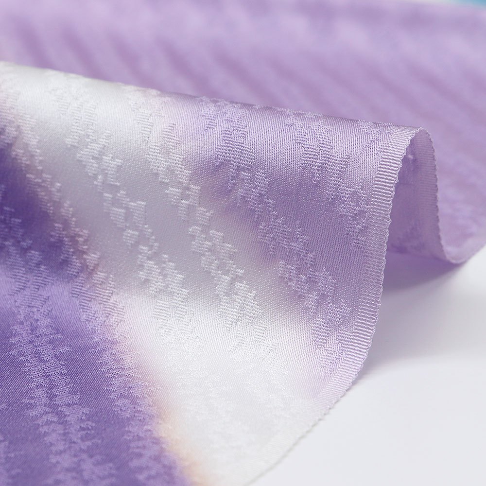 しなやかなハリのある正絹地に、斜めぼかしを染めた一枚。鮮やかな色合いと光沢感のある質感で華やかな仕上がりになっています。