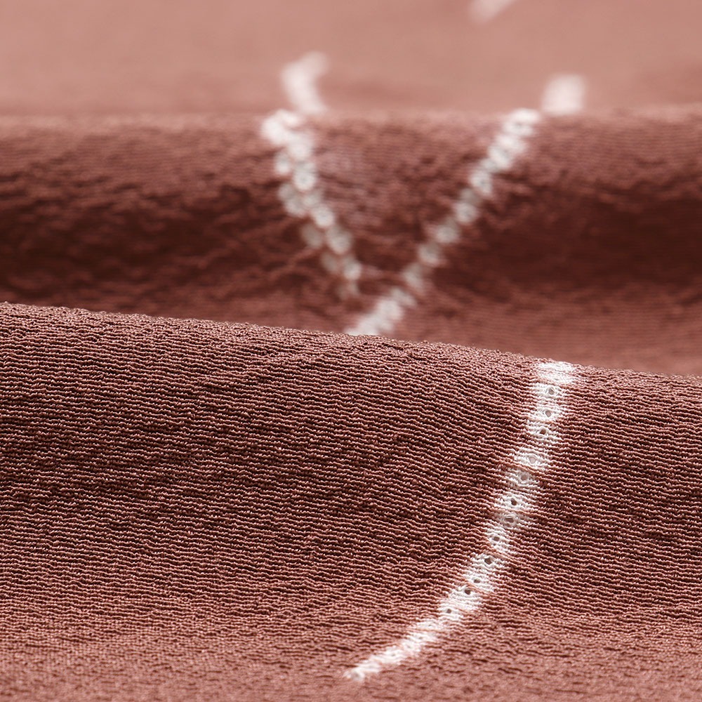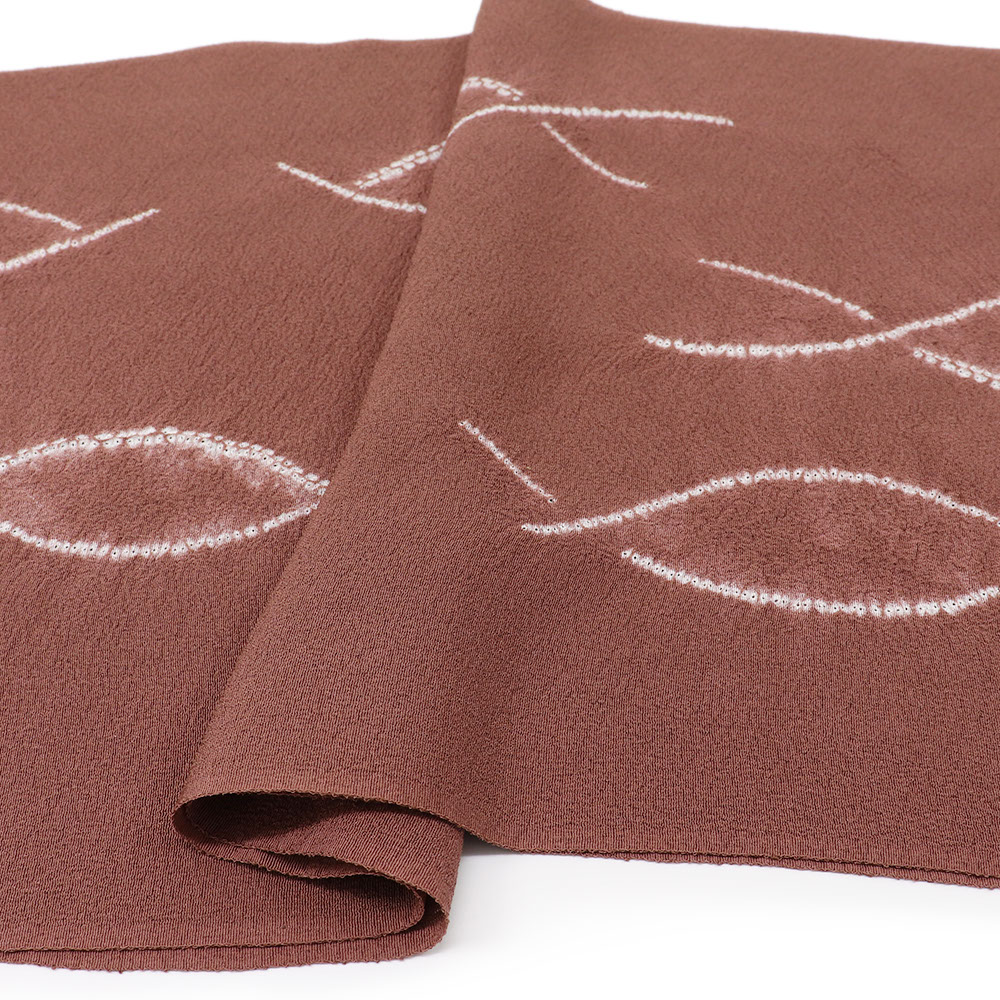 ちりめん地に、輪出し絞りを施した一枚です。小さなよろけ模様を散りばめているので、絞りならではのボリューム感が抑えられた仕上がりに。可愛くなりがちな絞りを、スマートな雰囲気で楽しみたい方にオススメしたいデザインです。