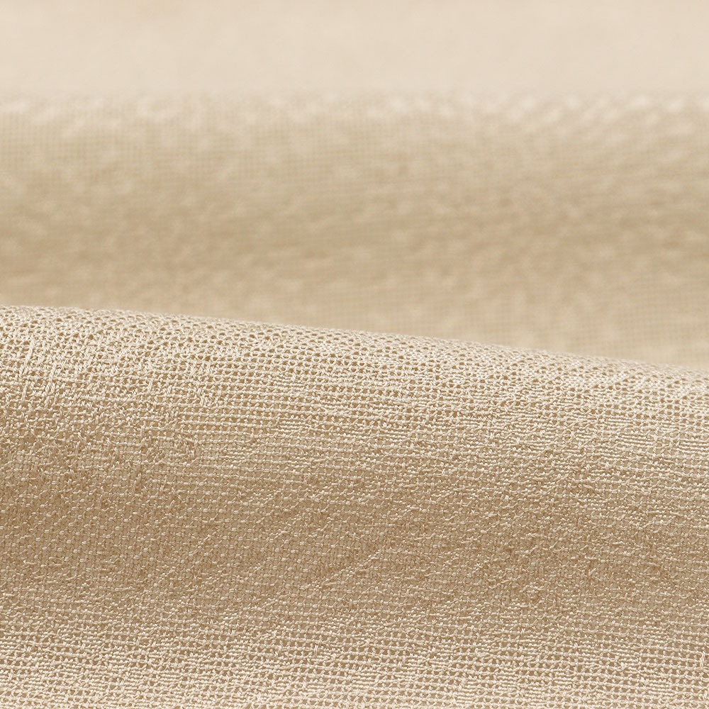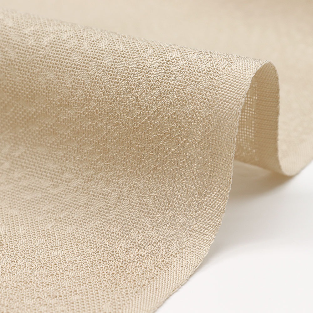 薄茶色の紗地に、むじな菊を織り出した夏の一枚。シンプルだからこそ映える繊細な地紋が、身につけた時の生地のうねりや角度によって多彩な表情を見せてくれます。着物の色や柄を問わず、幅広いコーディネートにしっかり活躍してくれるでしょう。