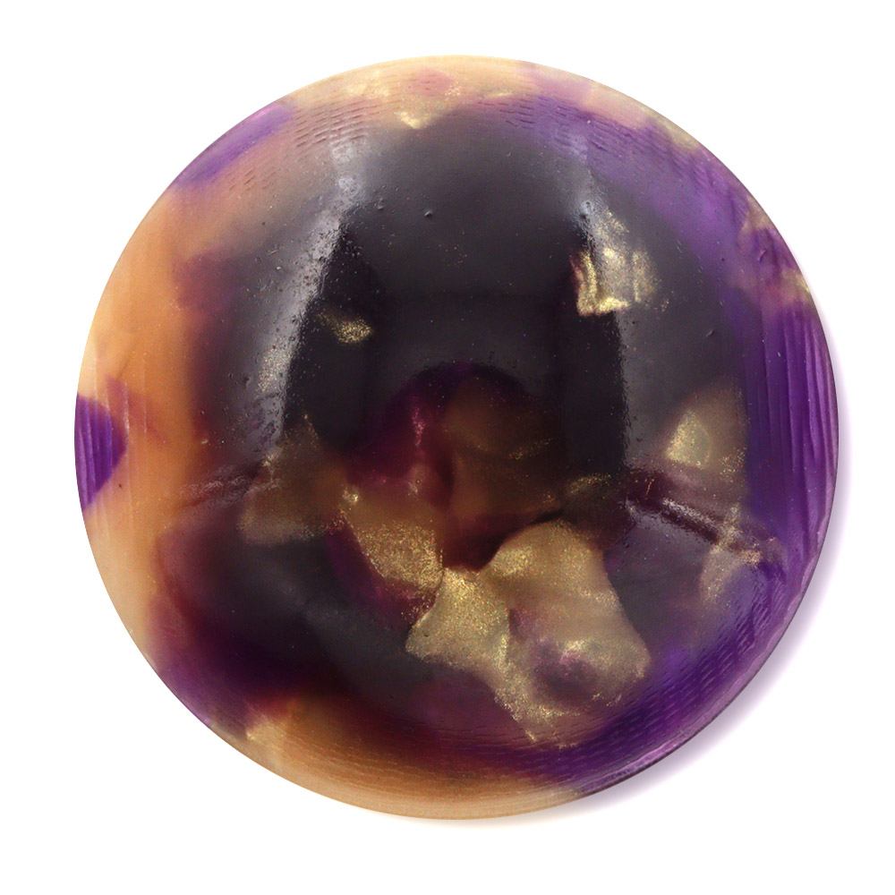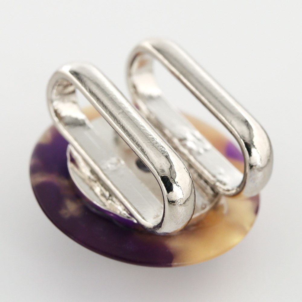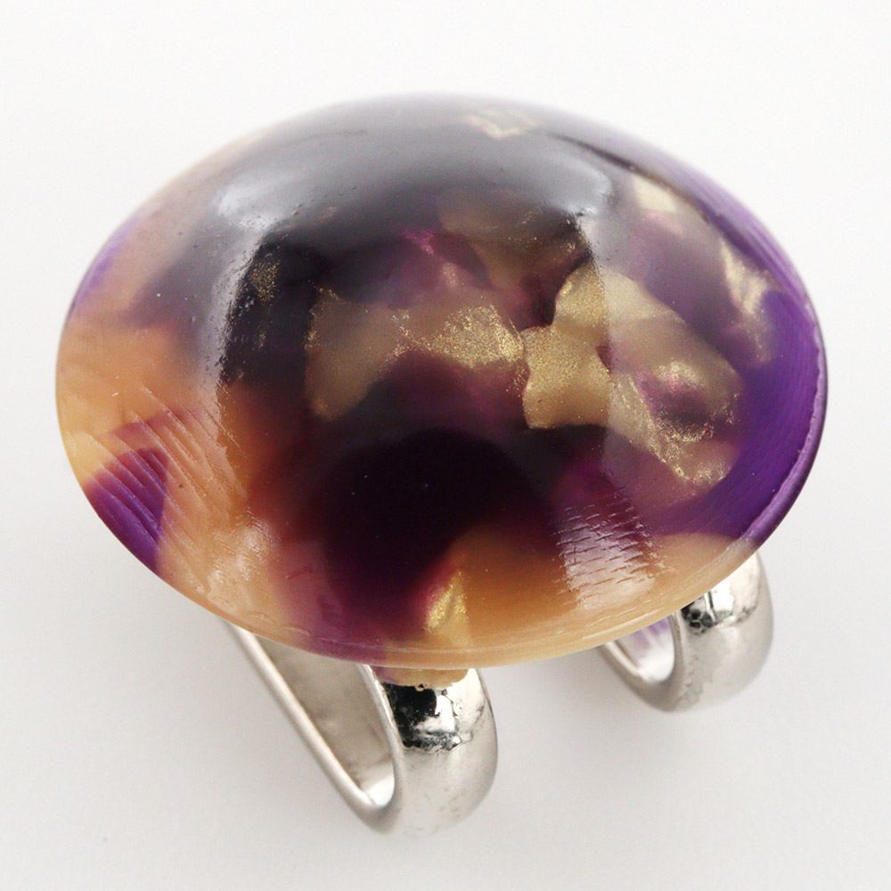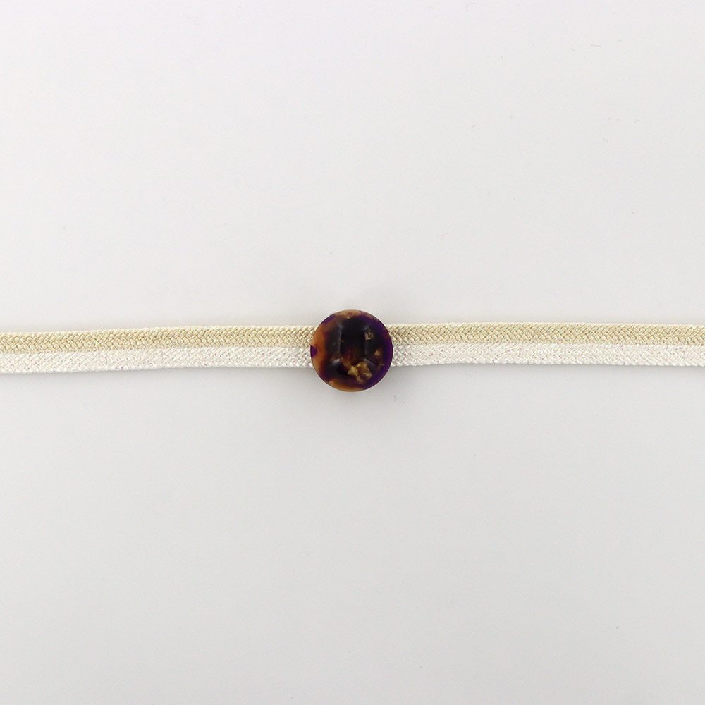 小さな丸にマーブル模様をデザインした、樹脂帯留。