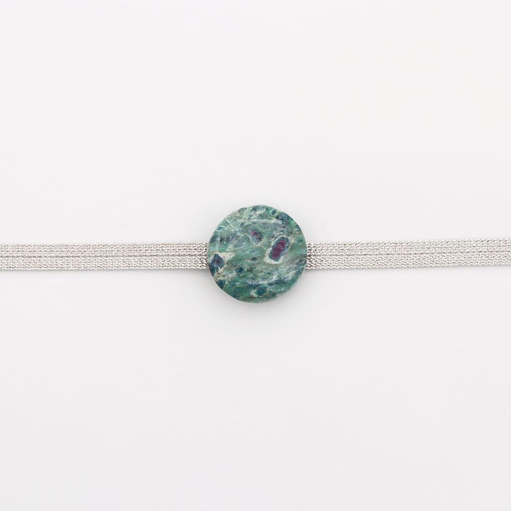 天然石「ルビーインフックサイト」で製作した、天然石帯留。