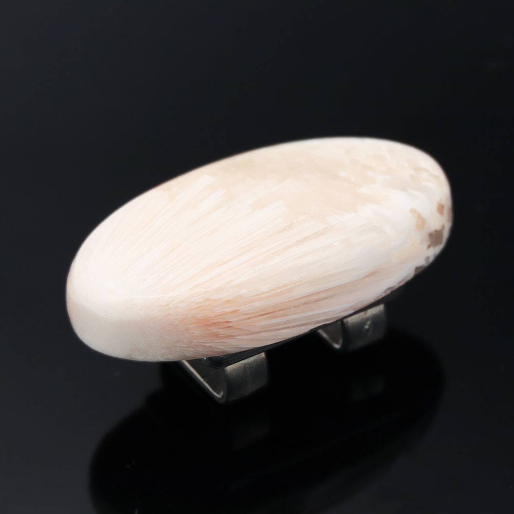ピンクみのあるベージュが柔らかな、不透明のスコレサイト。表面に広がる複雑な模様は、柱状または針状の結晶によるもので、独特の存在感を放ちます。