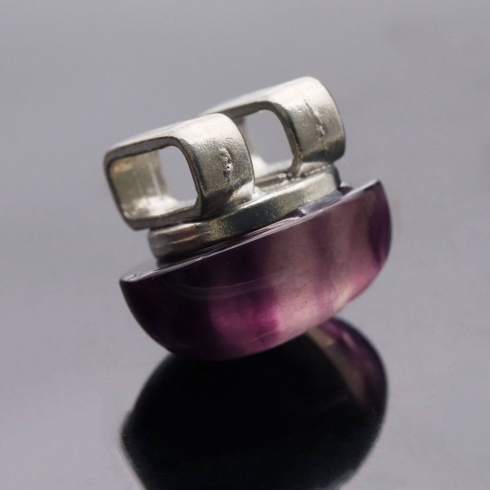 鮮やかなパ紫と透明感が美しいフローライト。奥行きのある模様がコーディネートにふたつとない煌めきを添えてくれるでしょう。