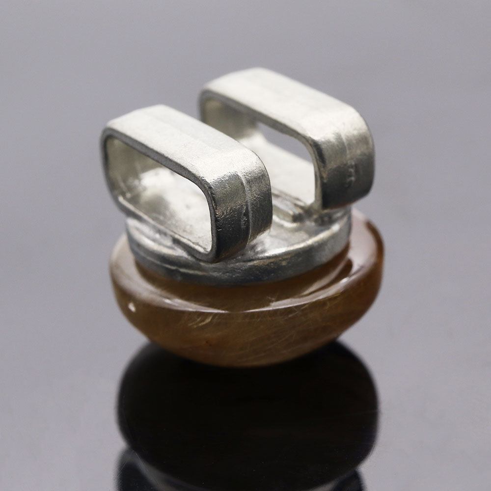 天然石「ルチルクォーツ」で製作した天然石帯留です。