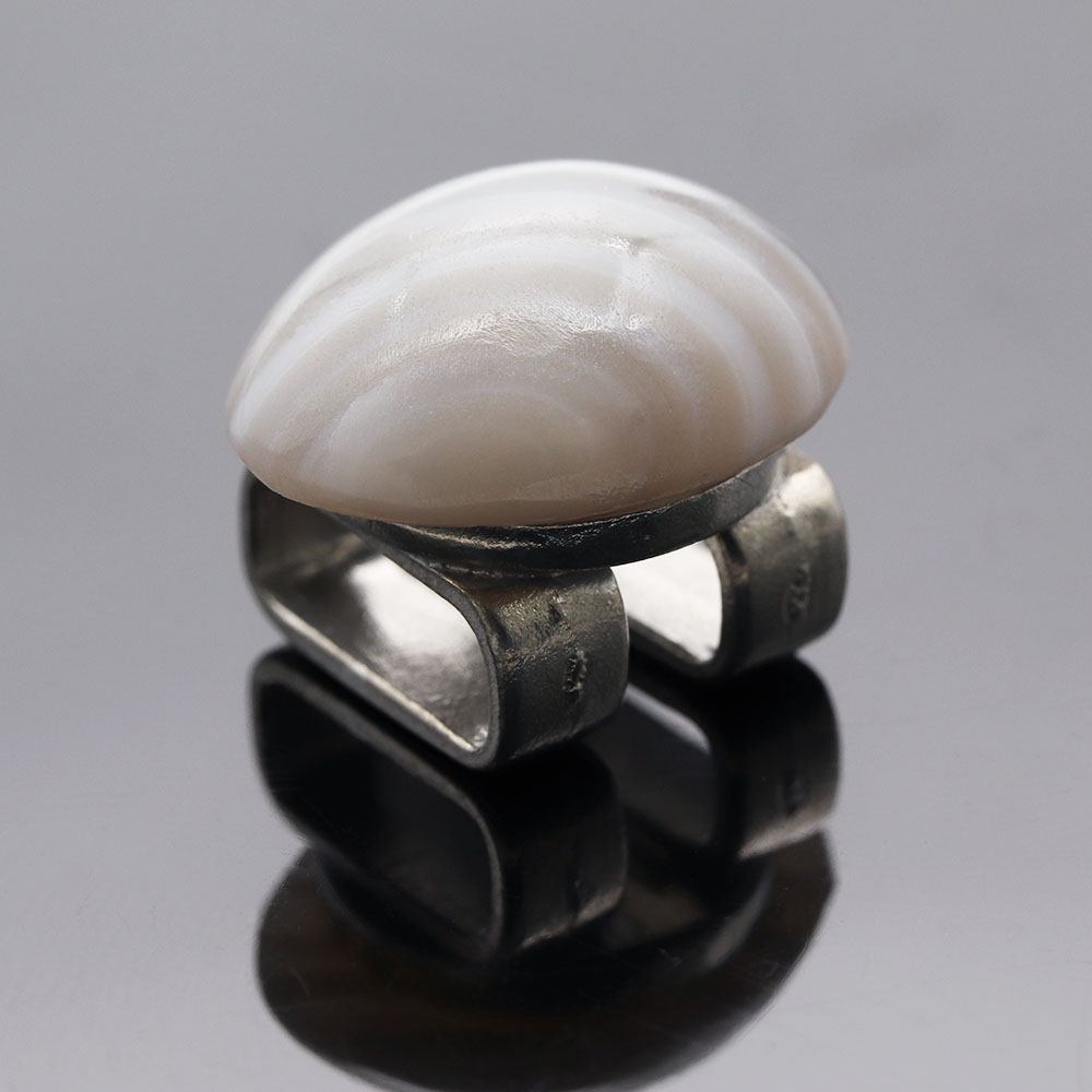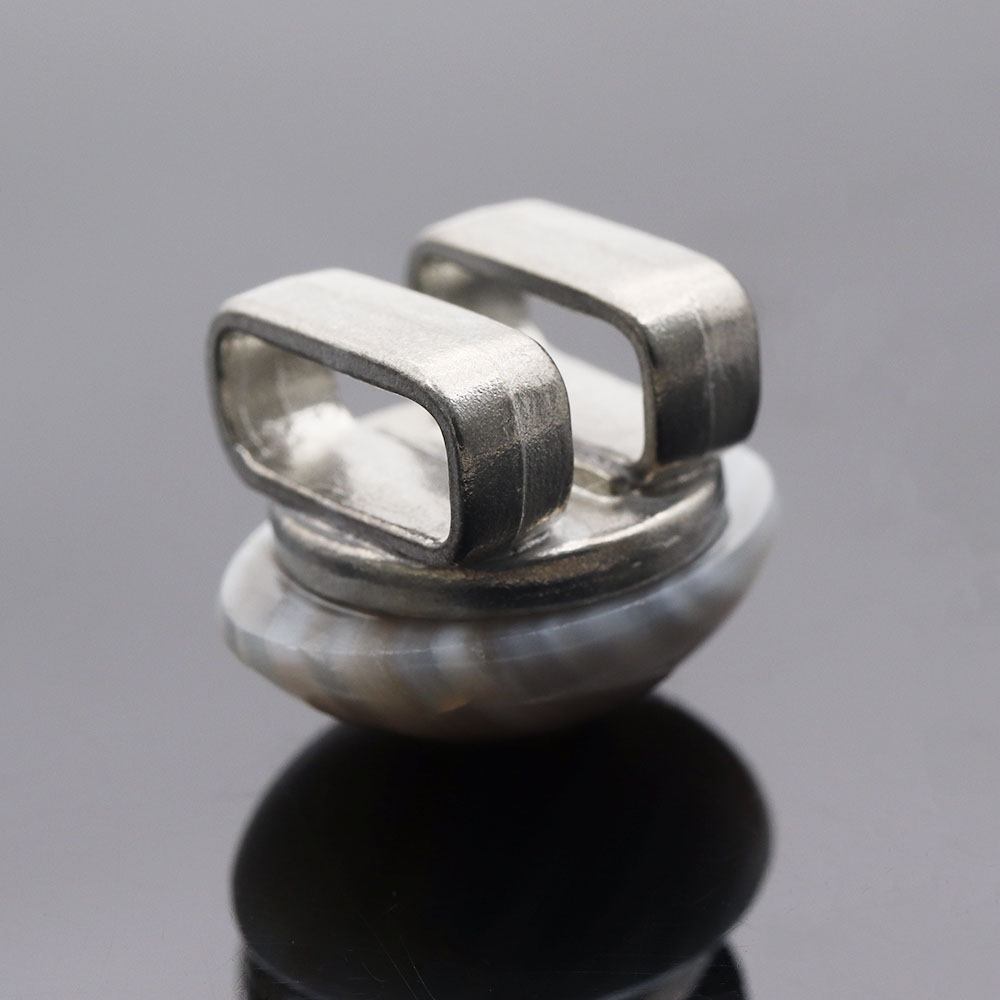カルセドニーは石英の一種で、多様な色合いが特徴。石の艶感を味わえるなめらかなカットで、シャープでモダンな仕上がりになっています。