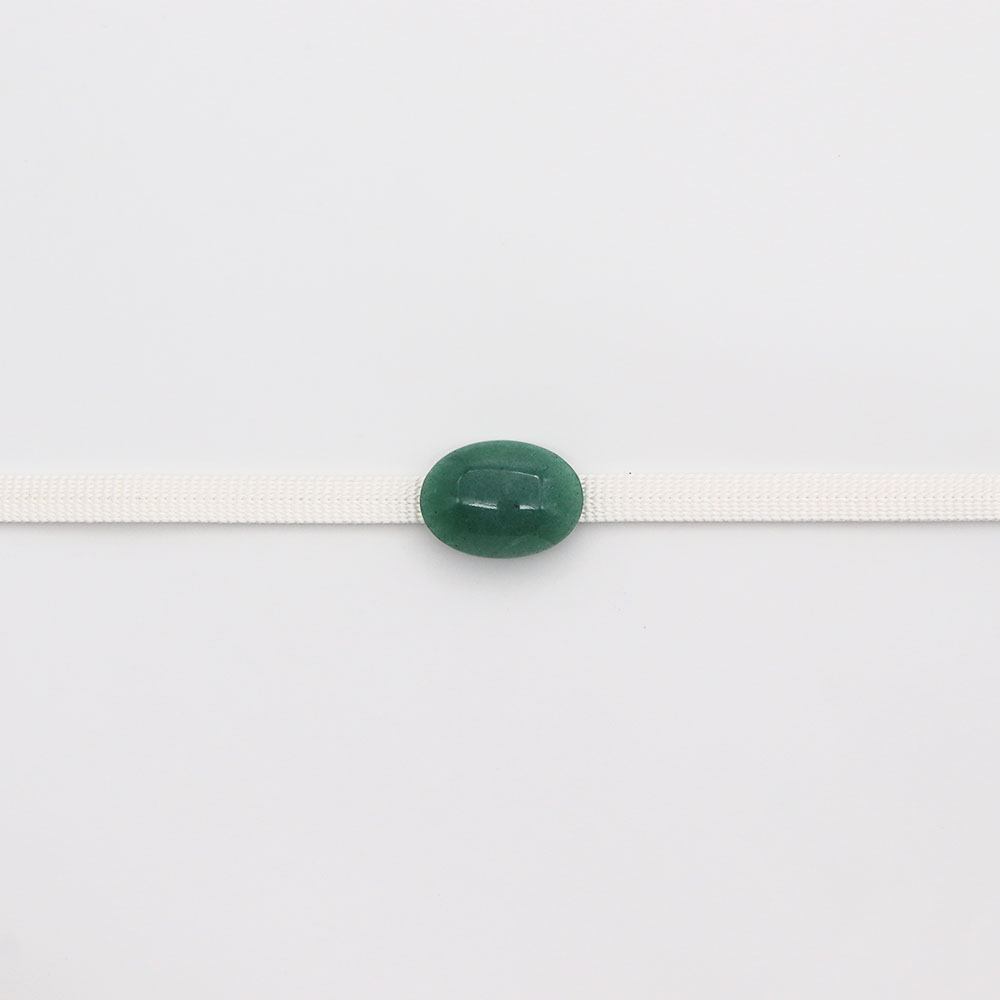 グリーンアベンチュリンクォーツとは、水晶(クォーツ)の中にクロム雲母を巻き込んで形成された天然石。鮮やかな緑色と、キラキラと輝く結晶が全体に見られるのが特徴です。その美しさは合わせる三分紐の色や素材で印象が変わり、帯回りのコーデを色々と楽しめますよ。