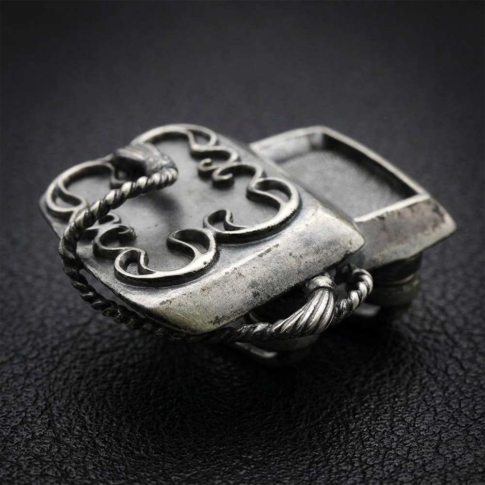 玉手箱をモチーフにした銀製帯留です。小さいながらも繊細な細工の施されており、存在感あふれる仕上がりです。