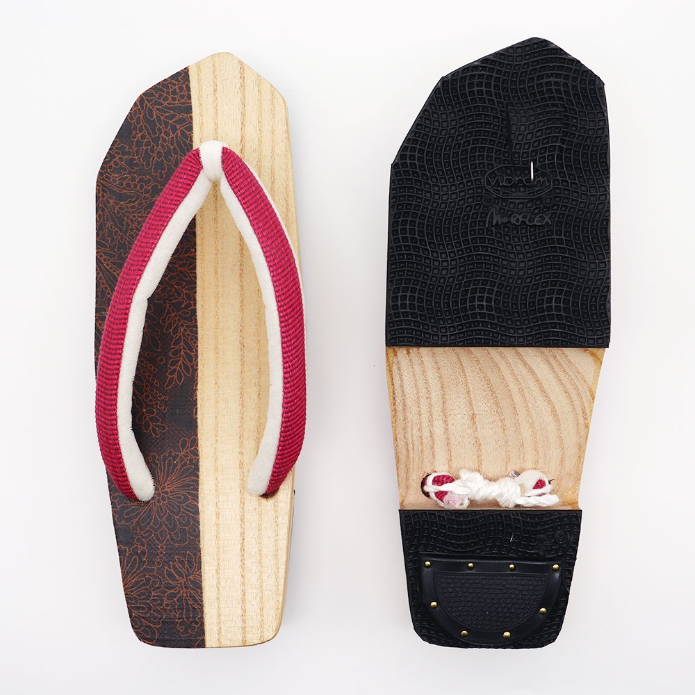 明治45年創業、福島県・会津地方で桐下駄をつくり続ける【黒澤桐材店】と、京都・平安神宮のほど近くに店舗を構える、染め工房ブランド【小室庵】がコラボした桐下駄。