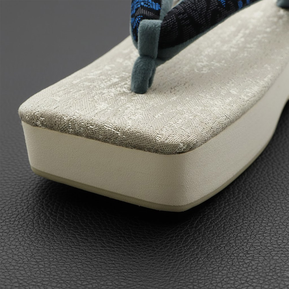台には、スポーツ用品にもよく使用されるEVAゴムなので軽量で歩きやすい機能性。すげ穴も付いているので、鼻緒の調節が可能です(※専門店にご相談ください)。かかとゴムも交換可能なので、どんどん歩いて長く楽しめるのも嬉しいですね。