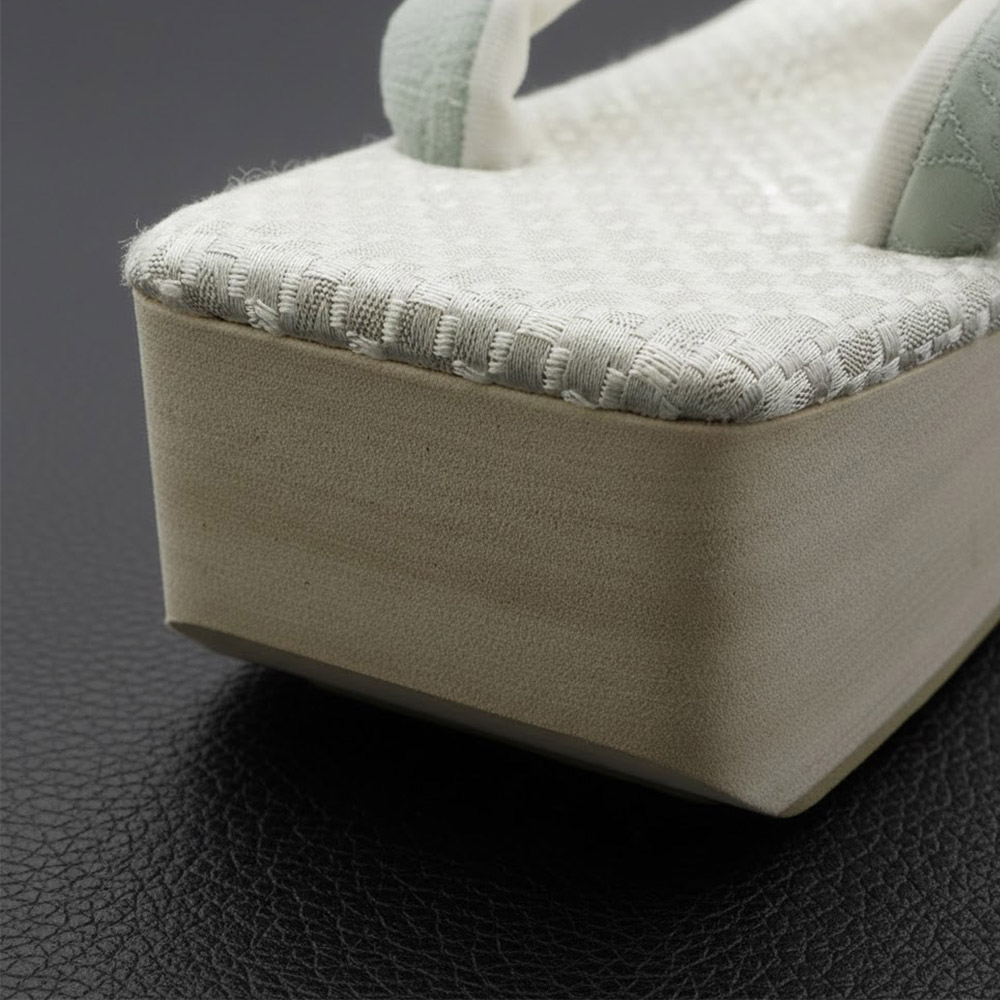 台には、スポーツ用品にもよく使用されるEVAゴムなので軽量で歩きやすい機能性。すげ穴も付いているので、鼻緒の調節が可能です(※専門店にご相談ください)。かかとゴムも交換可能なので、どんどん歩いて長く楽しめるのも嬉しいですね。