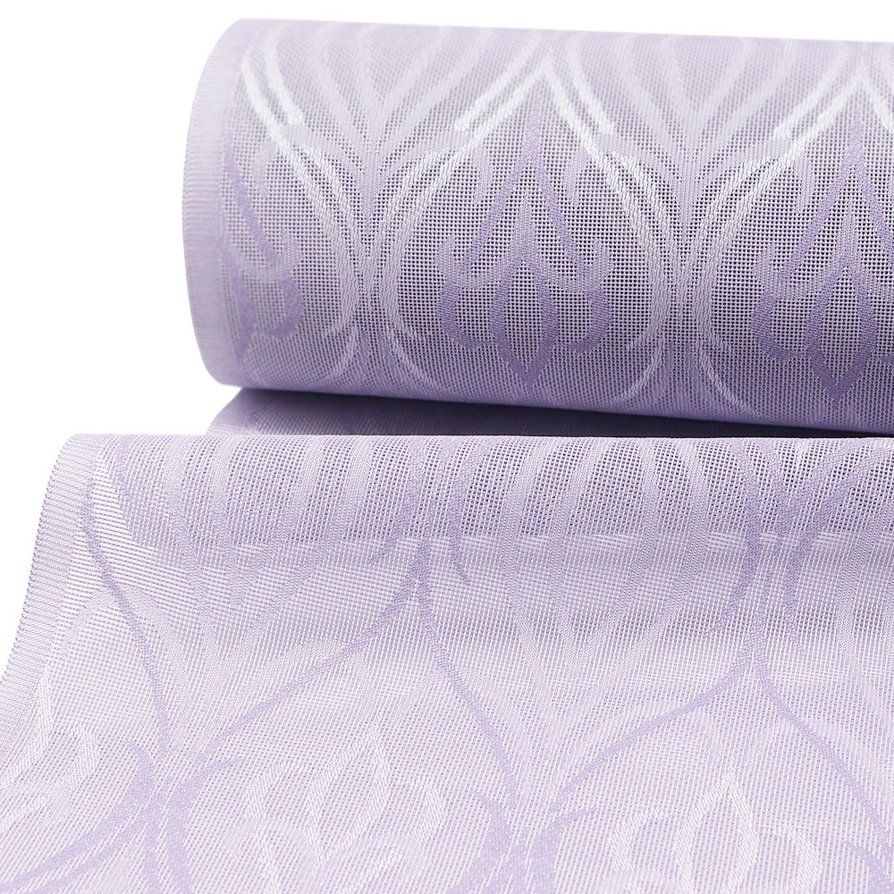 先染めで染められた薄紫色の糸で、ダマスクを繊細に織り出した一枚。透け感のある紗生地からほんのり覗かせる着物や襦袢が、夏ならではの粋や風情を演出します。吸い付くようなしなやかさと、ほど良いハリ感を併せ持つ風合いで心地よく身体にフィットしてくれるでしょう。