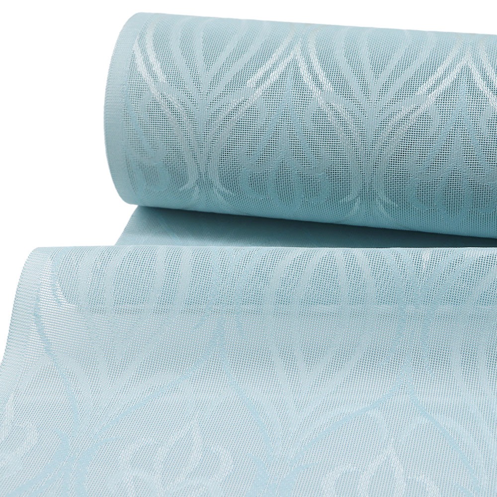 先染めで染められた水色の糸で、ダマスクを繊細に織り出した一枚。透け感のある紗生地からほんのり覗かせる着物や襦袢が、夏ならではの粋や風情を演出します。吸い付くようなしなやかさと、ほど良いハリ感を併せ持つ風合いで心地よく身体にフィットしてくれるでしょう。