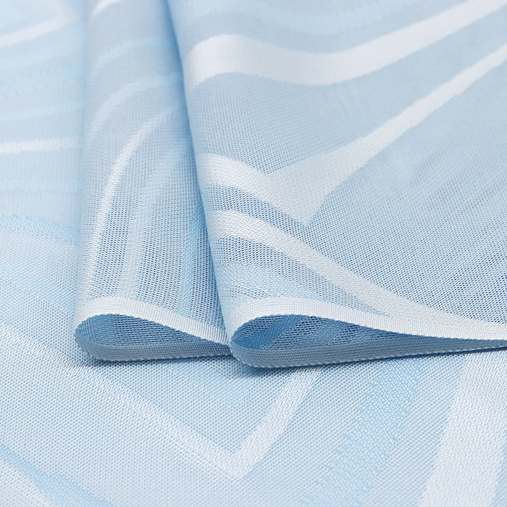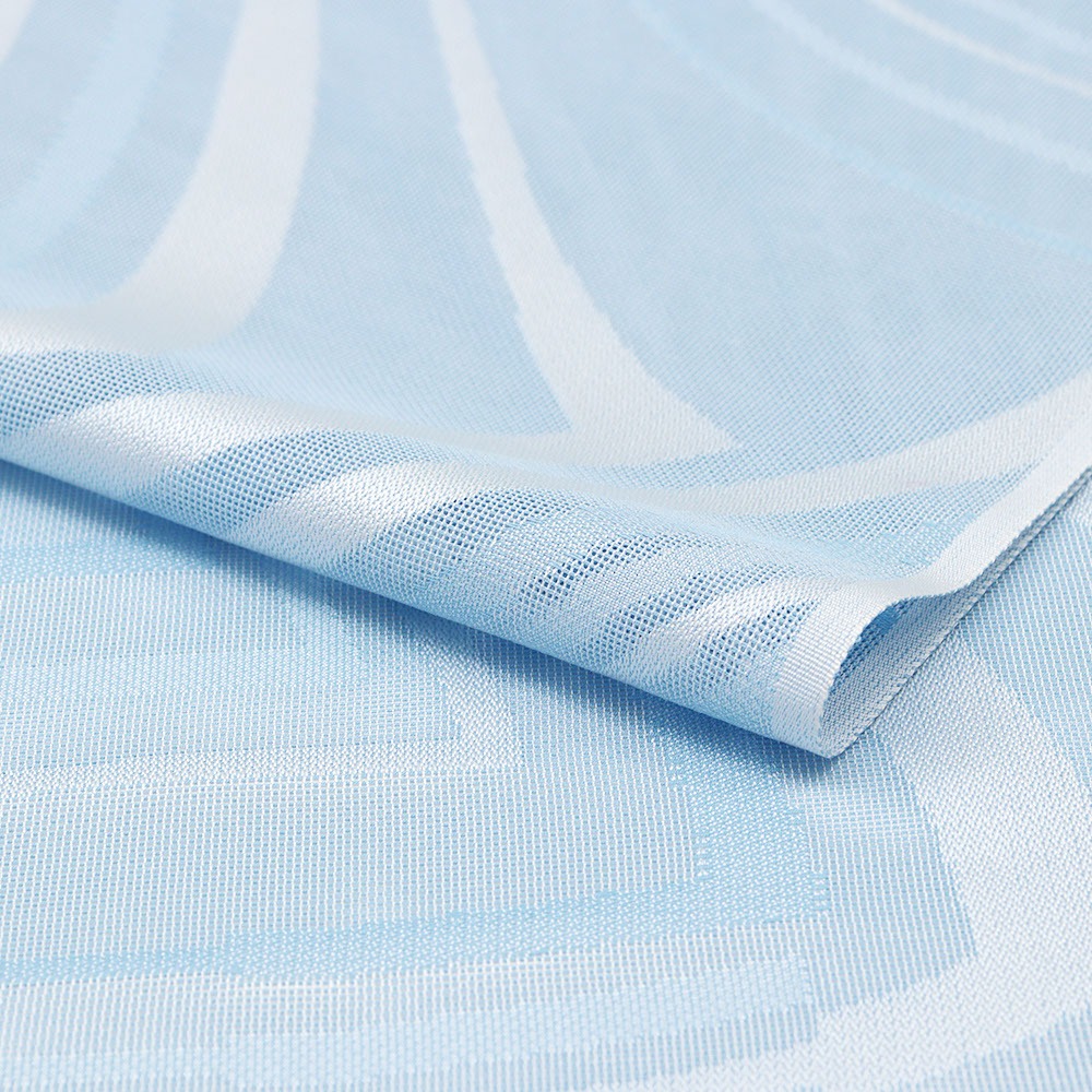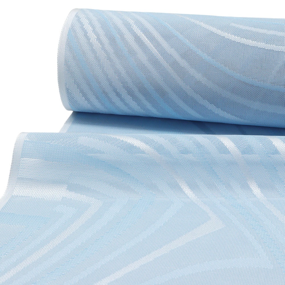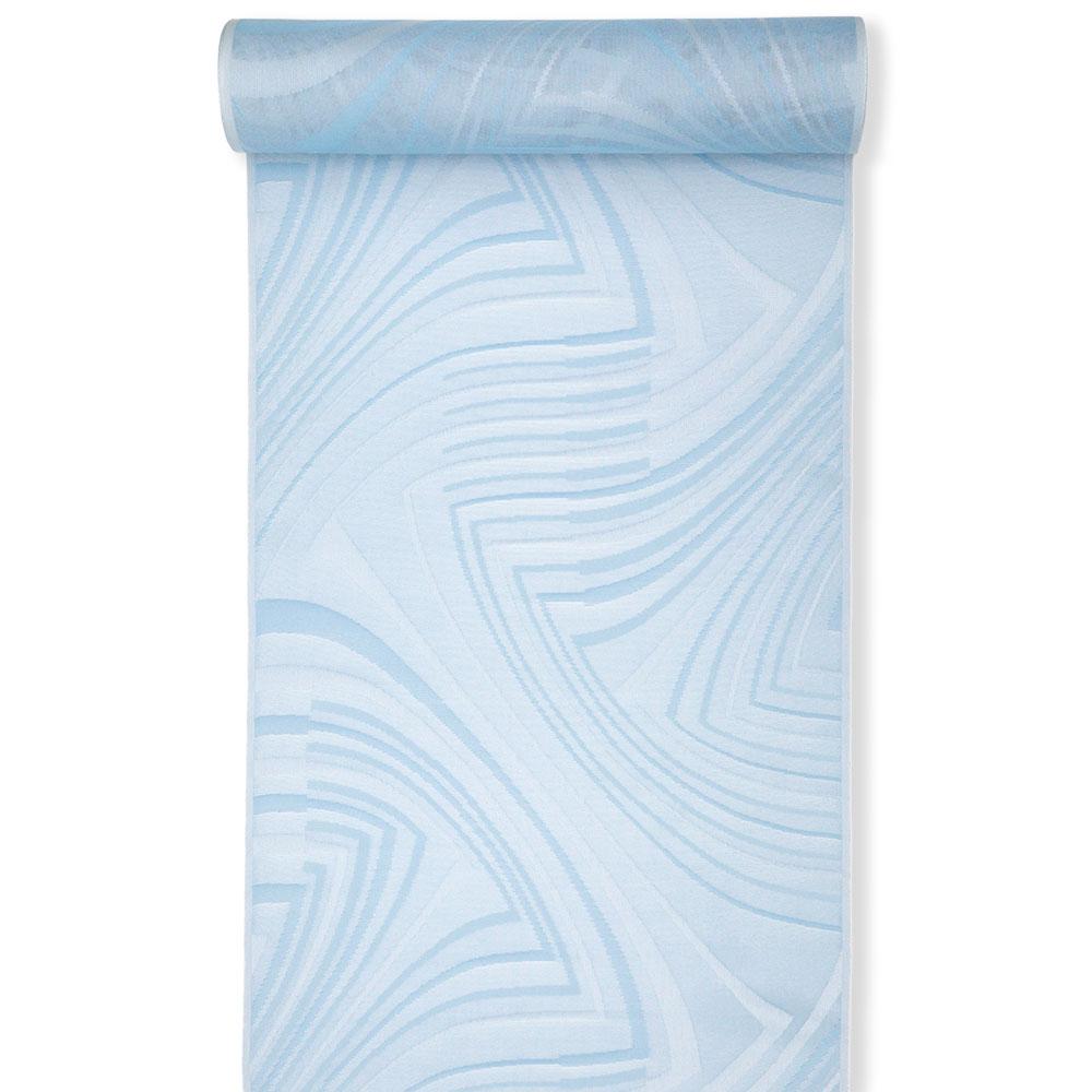先染めで染められた水色の糸で幾何模様を繊細に織り出した一枚。透け感のある紗生地からほんのり覗かせる着物や襦袢が、夏ならではの粋や風情を演出します。吸い付くようなしなやかさと、ほど良いハリ感を併せ持つ風合いで心地よく身体にフィットしてくれるでしょう。