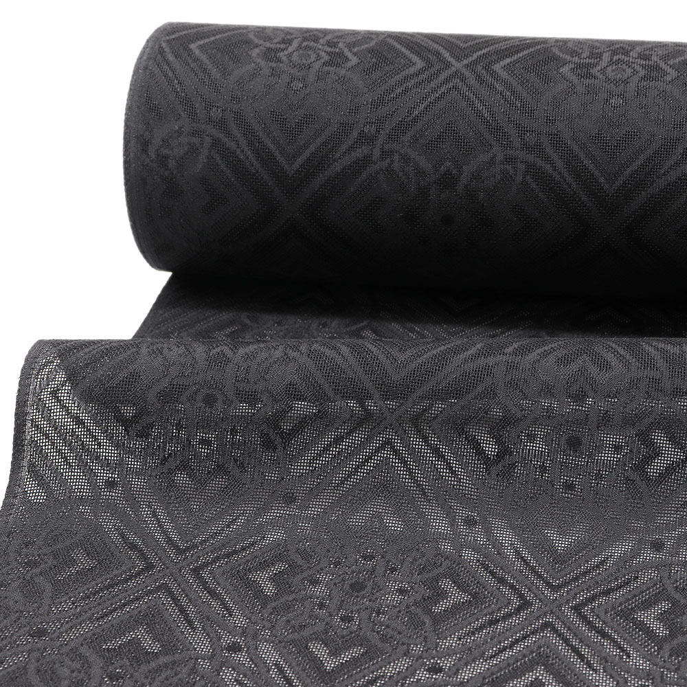 黒の地に広がる、緻密な更紗模様が奥行きを感じさせる一枚です。透け感があり軽やかな紗生地からほんのり覗かせる着物や襦袢が、夏ならではの風情を演出する仕上がりに。吸い付くようなしなやかさと、ほど良いハリ感を併せ持つ風合いで心地よく身体にフィットします。