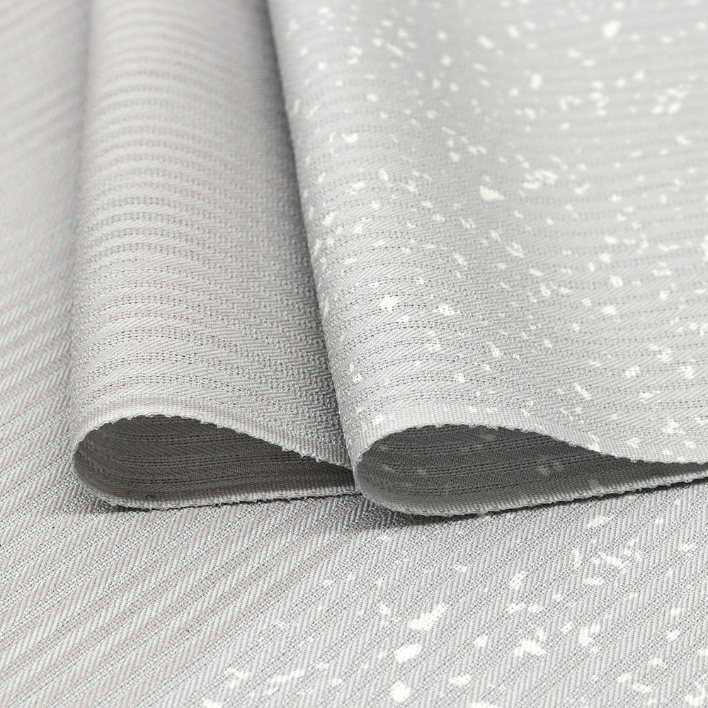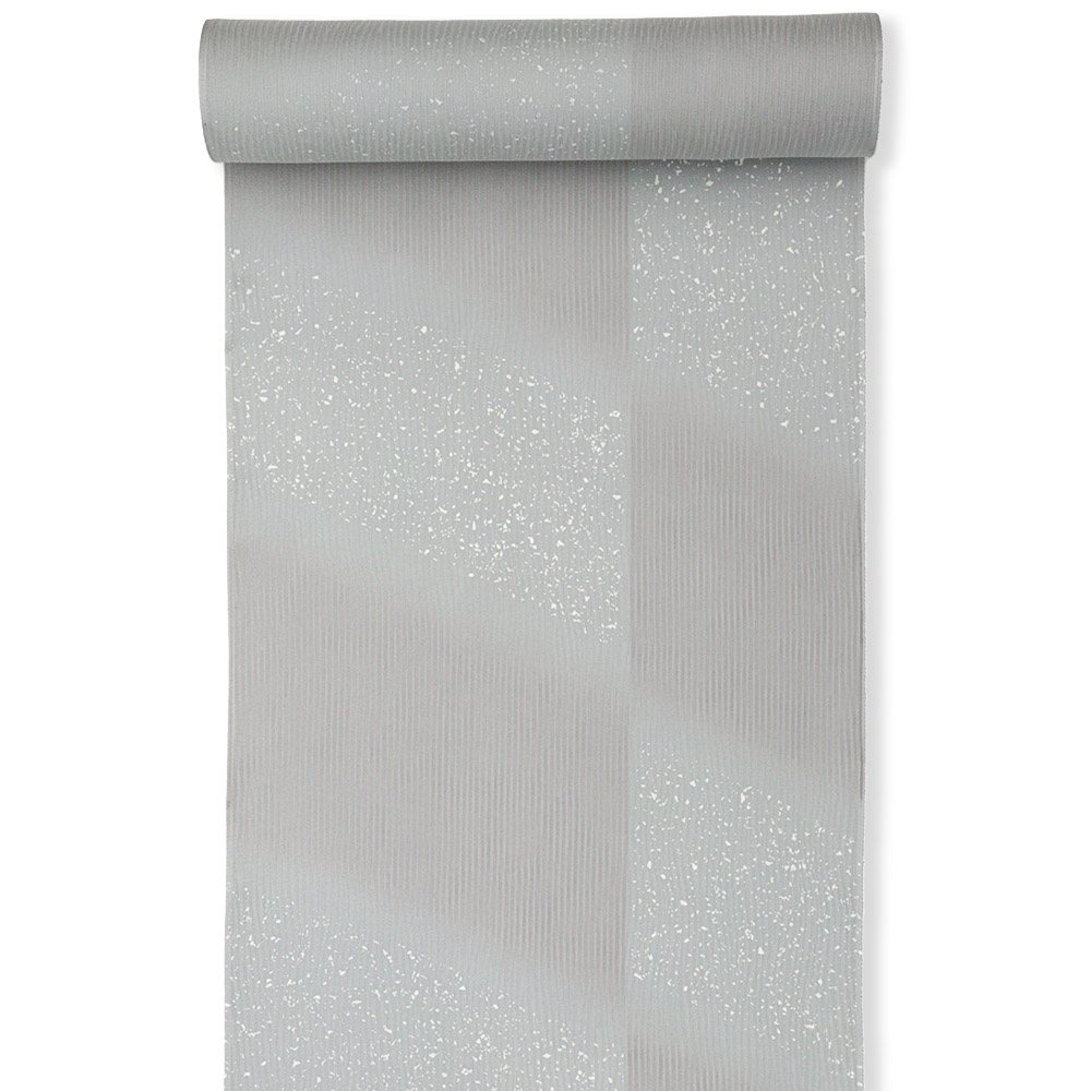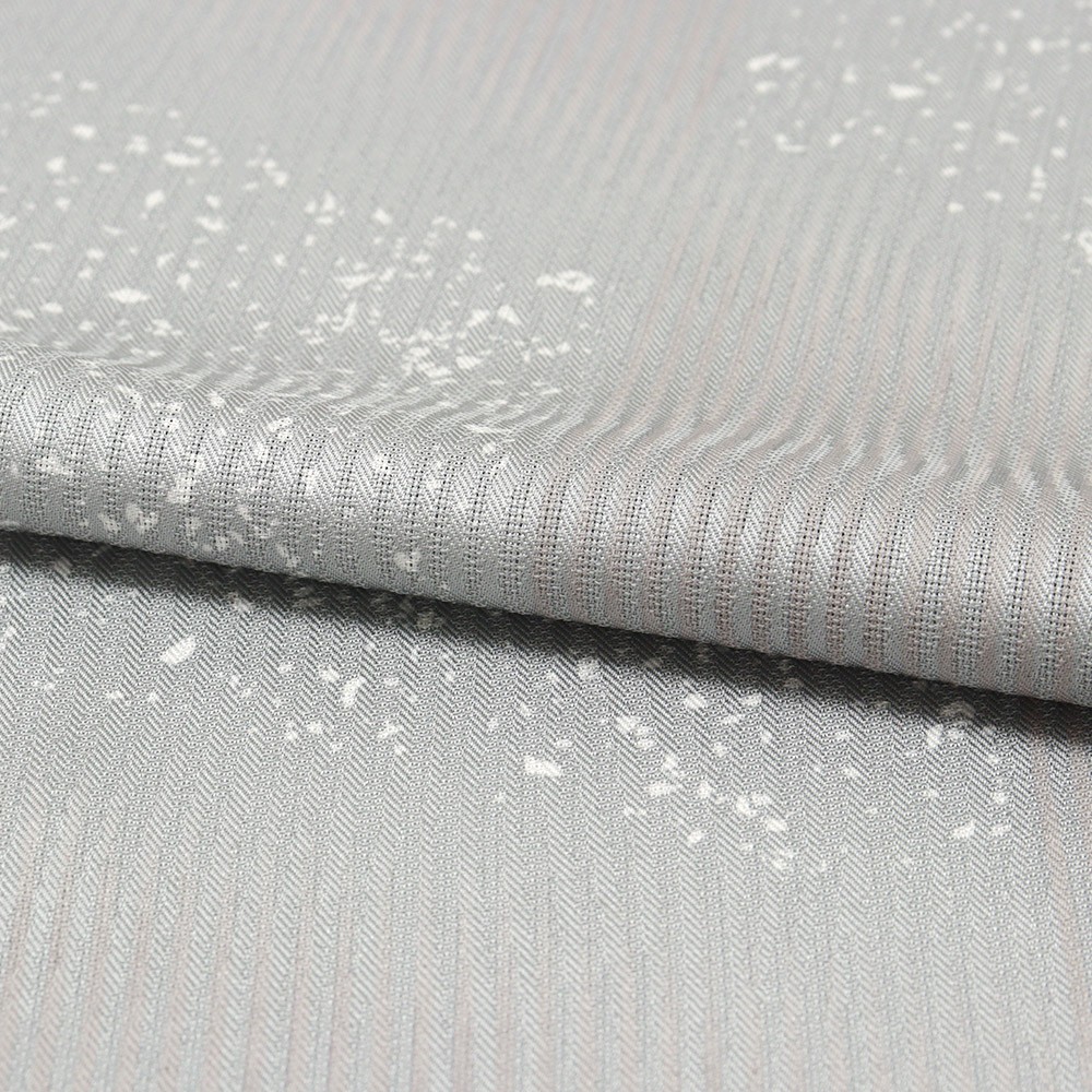 たたき染めのような飛沫と、無地場をもたせた市松取りの柄行きは、斜めの角度をつけることで動きを感じさせる仕上がりに。