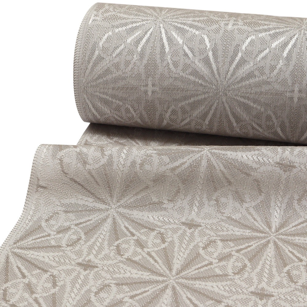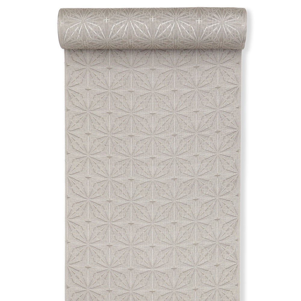 馴染みの良いベージュグレーの地に広がる、緻密なアラベスク模様が奥行きを感じさせる一枚です。