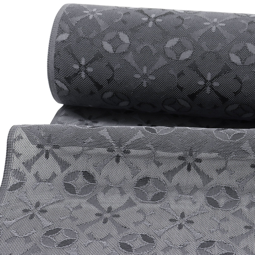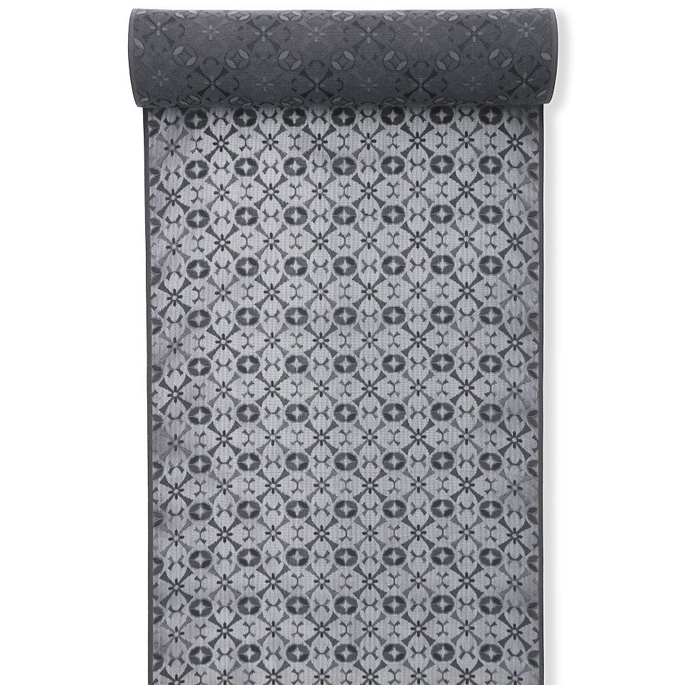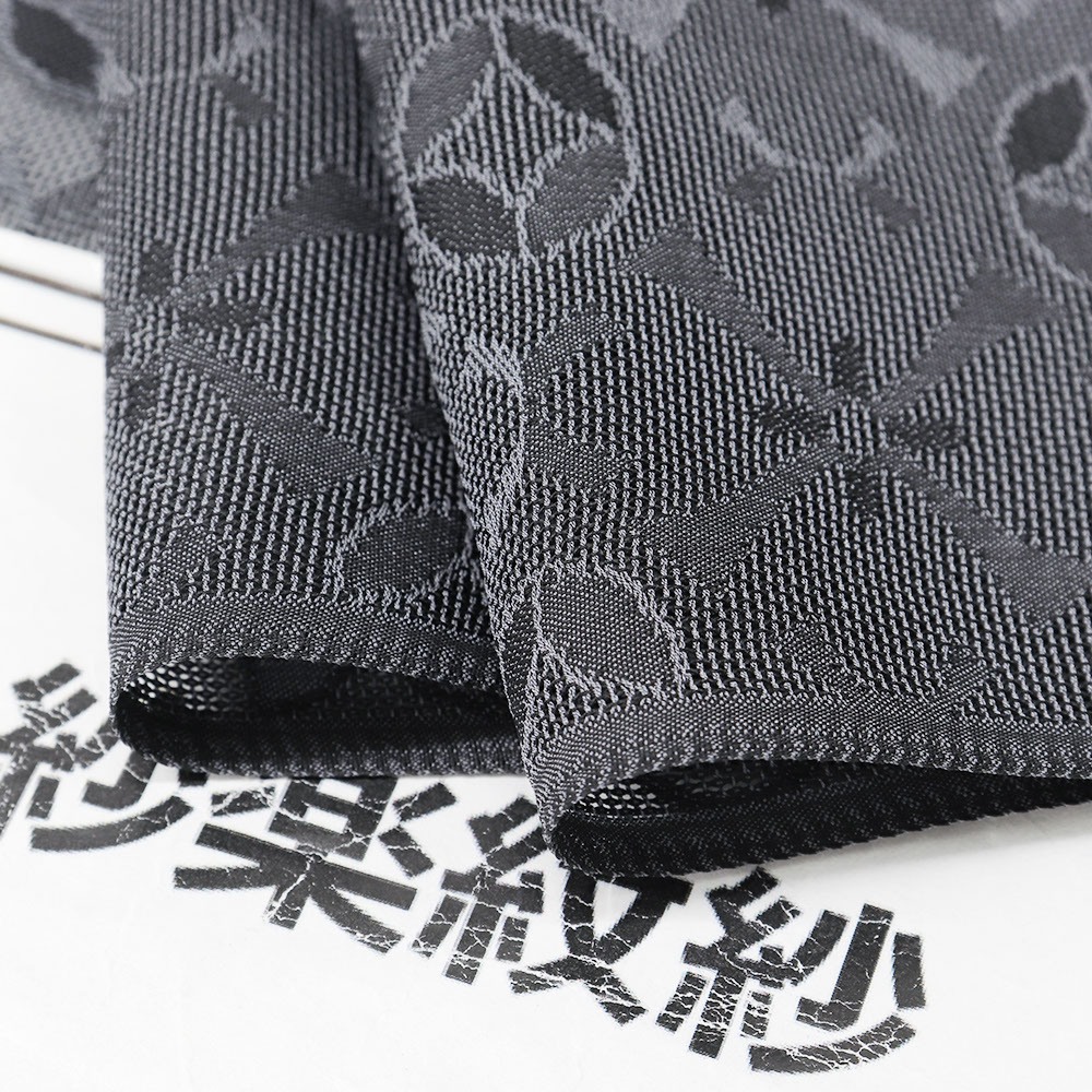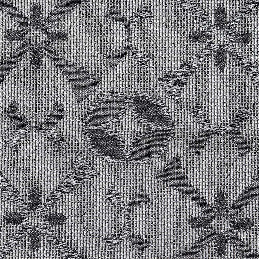 キリリと粋な黒と濃灰の地に広がる、緻密な七宝×花菱模様が奥行きを感じさせる一枚です。