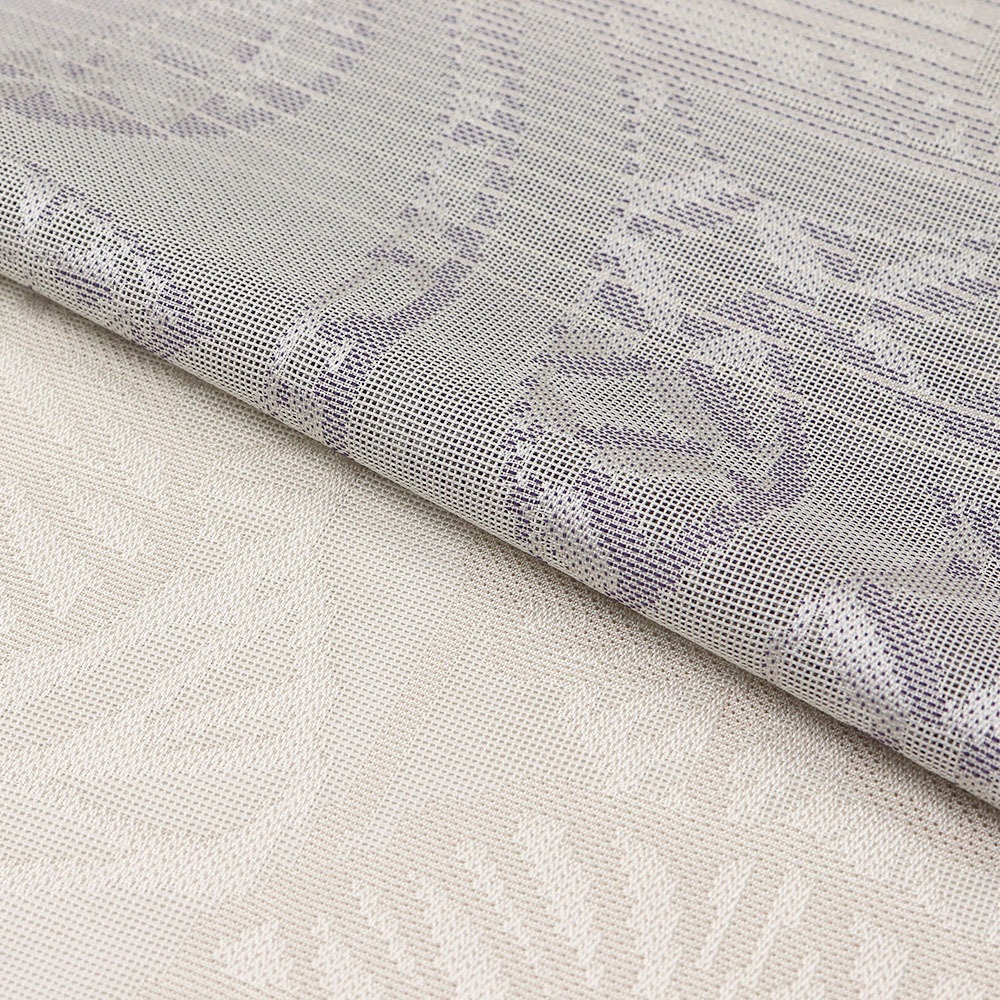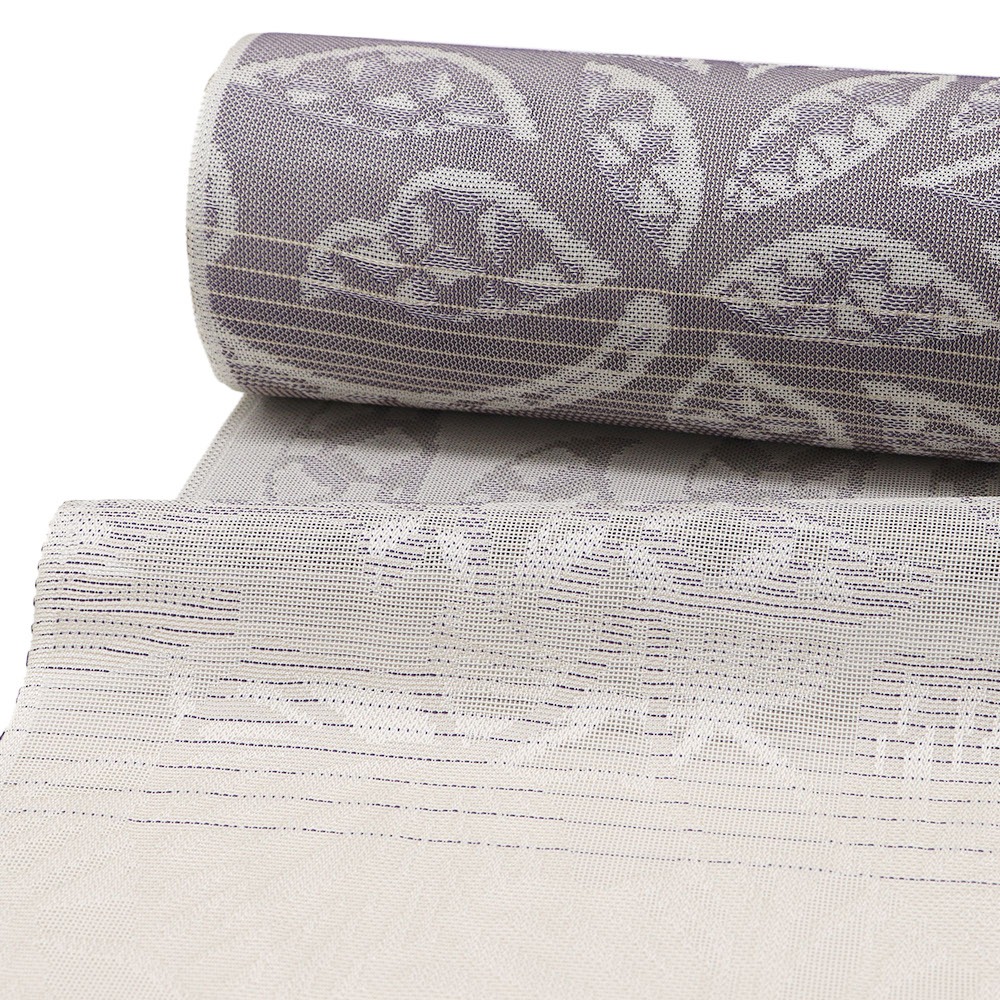 白灰×紫の横段と花格子がデザイン性と上品さを感じさせる一枚です。