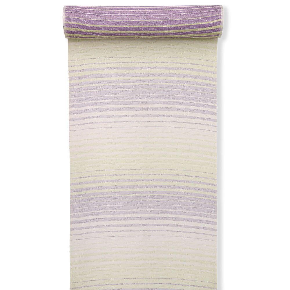 藤×クリームの、幾何的な横段模様がモダンさを感じさせる一枚です。