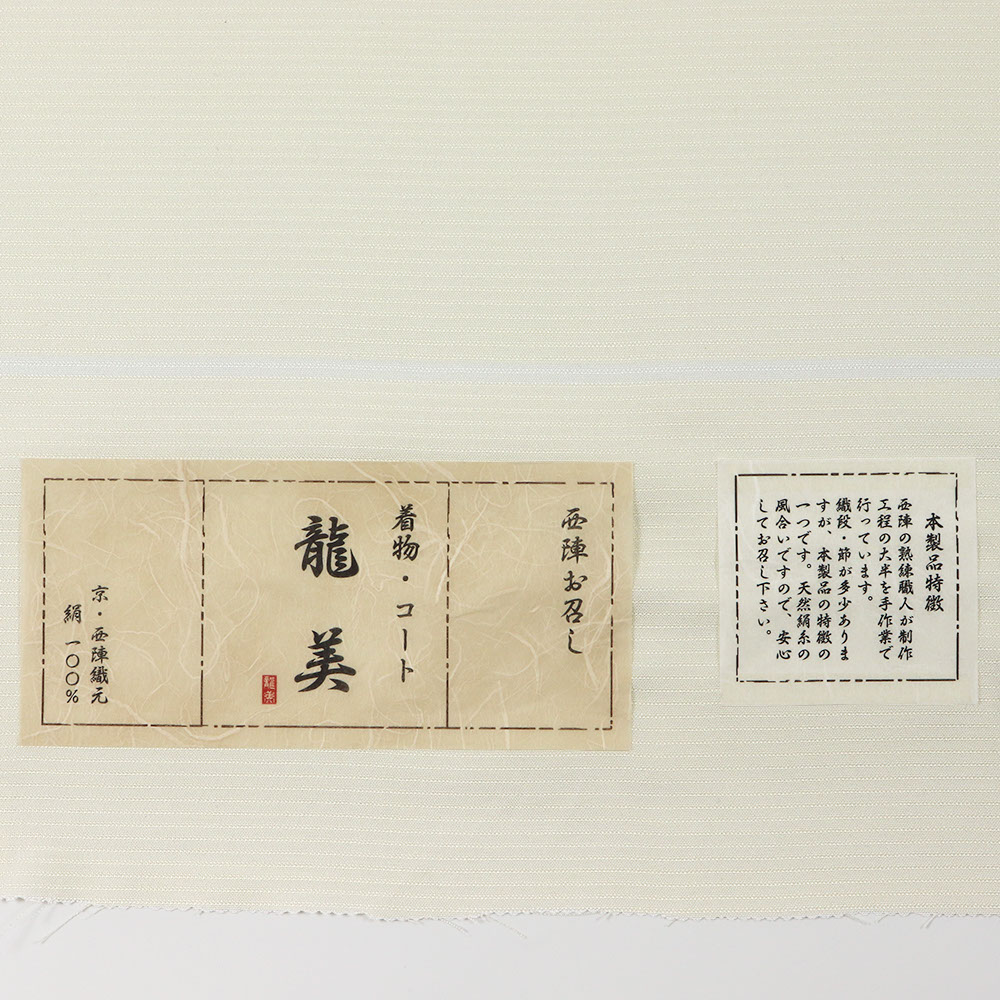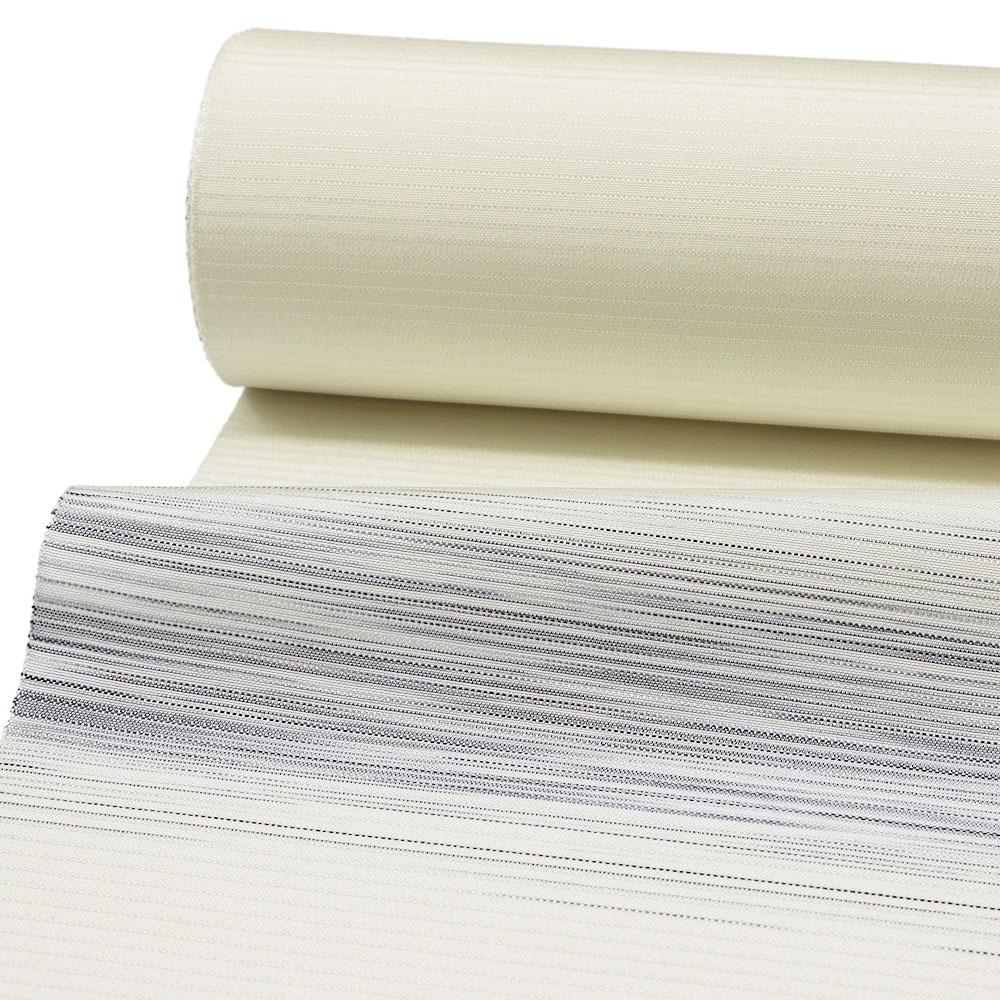 優し気な生成色に薄グレーを使用した横段ぼかしはモダンなカラーリングで、着姿にちょっとした華やぎを与えてくれそう。また、この地風や軽さを活かしてコートとして仕立てていただくのもおすすめです◎