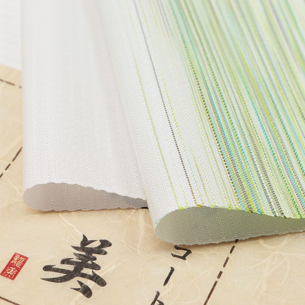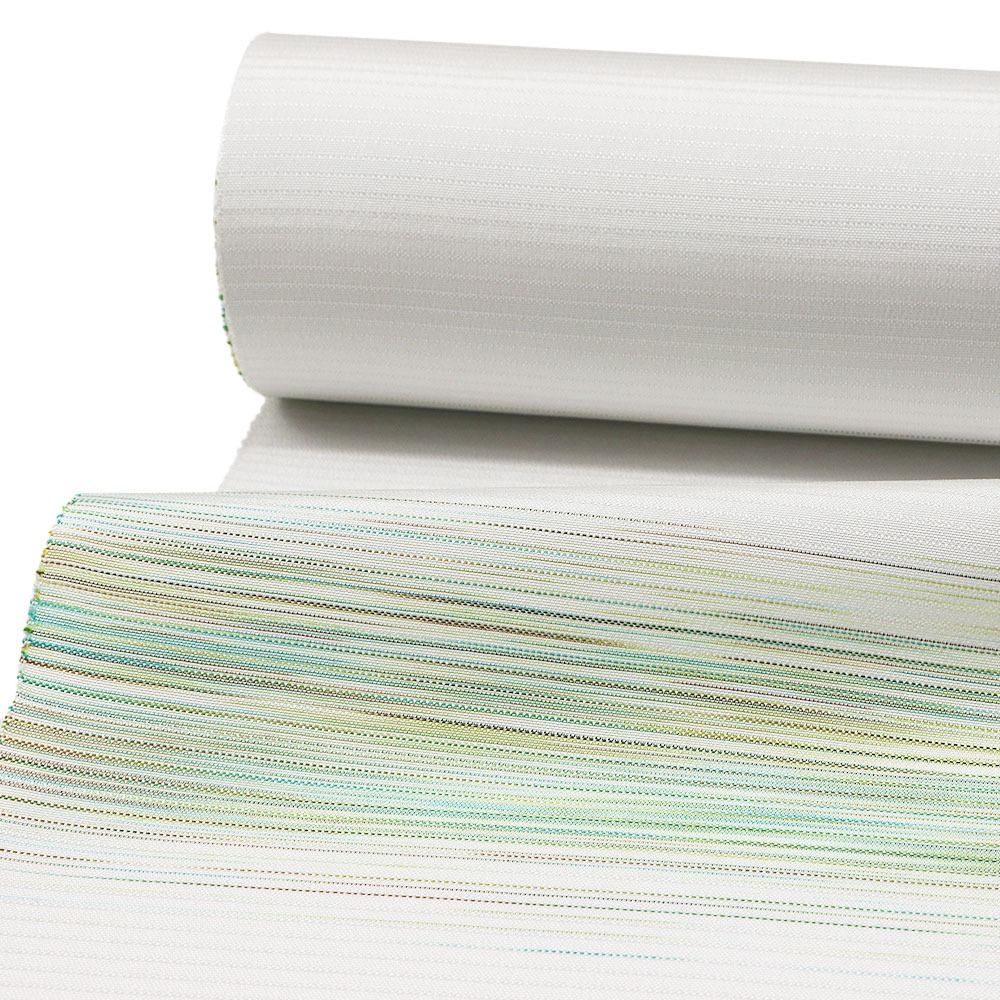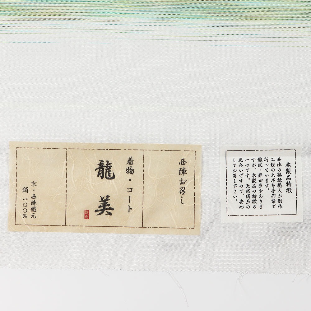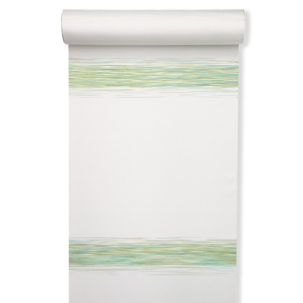 落ち着いた白色に黄緑を使用した横段ぼかしは彩りよく、着姿にちょっとした華やぎを与えてくれそう。また、この地風や軽さを活かしてコートとして仕立てていただくのもおすすめです◎
