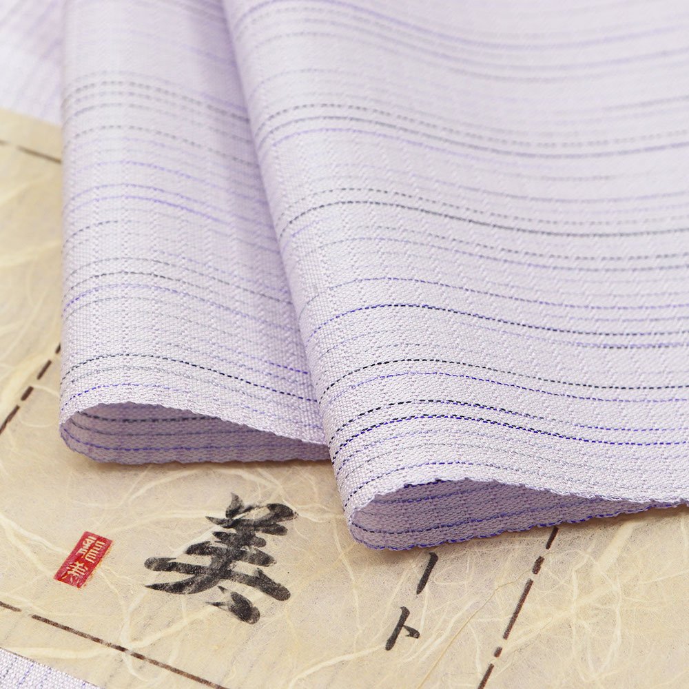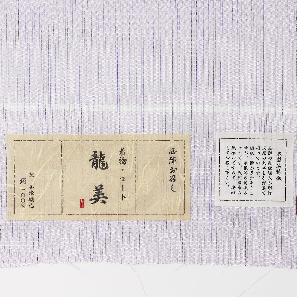 優し気な薄紫地に配された絣格子模様は着姿に上品で涼やかな印象を与えてくれそう。また、この地風や軽さを活かしてコートとして仕立てていただくのもおすすめです◎