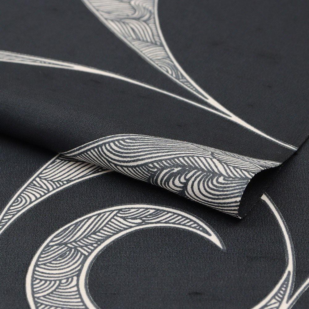 唐草をグラフィカルに変形させたような粋な一枚。シンプルながら凛とした存在感があり、ほどよい個性を演出してくれそうです。