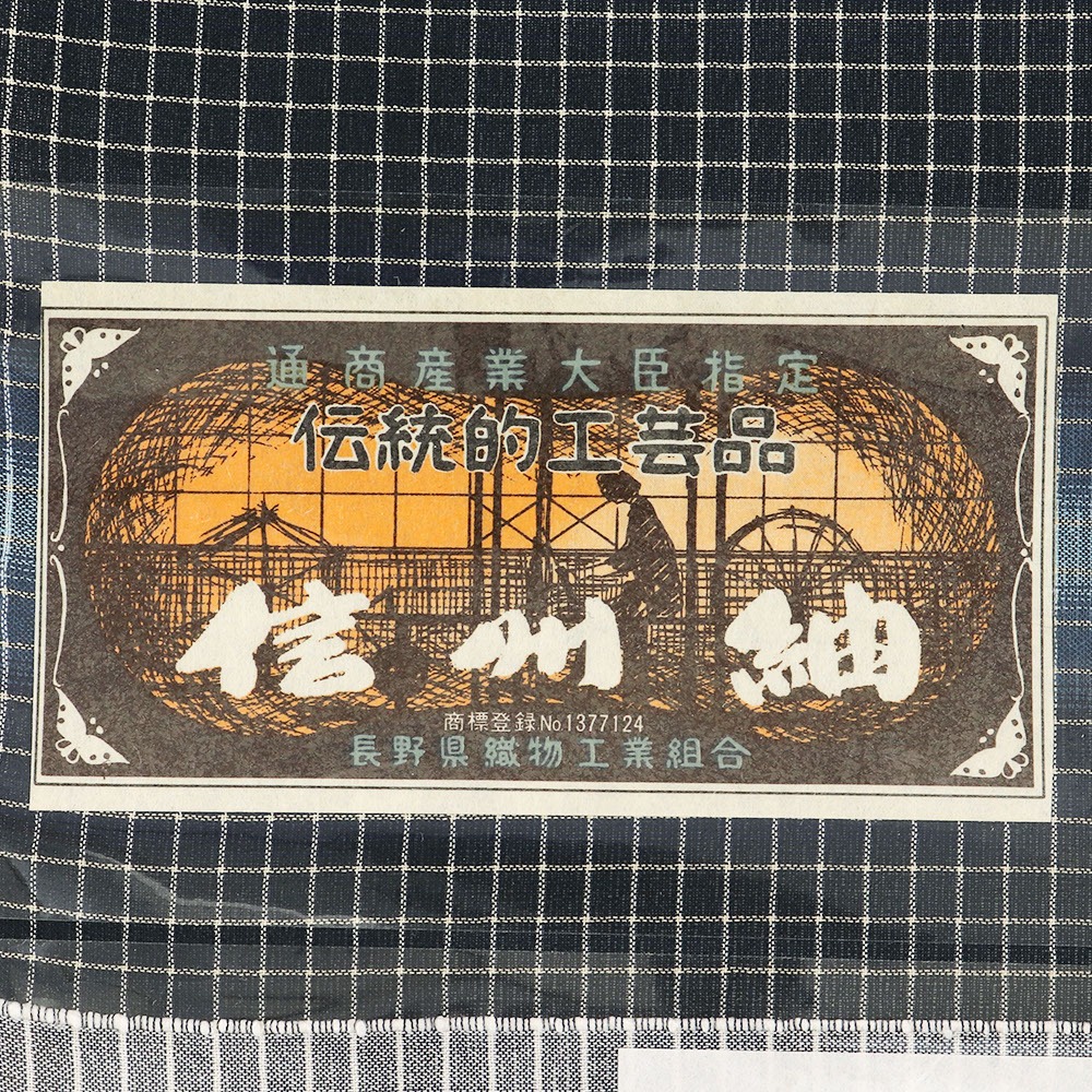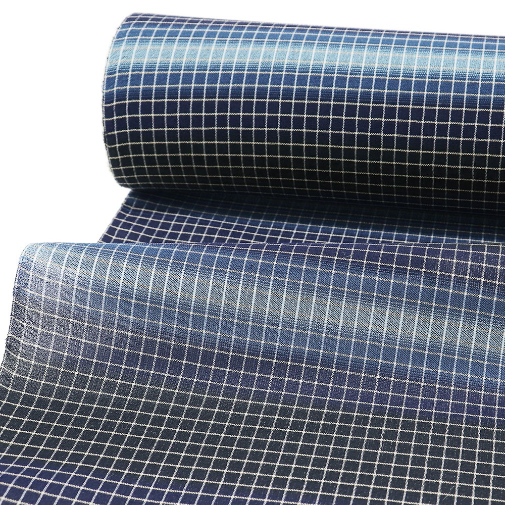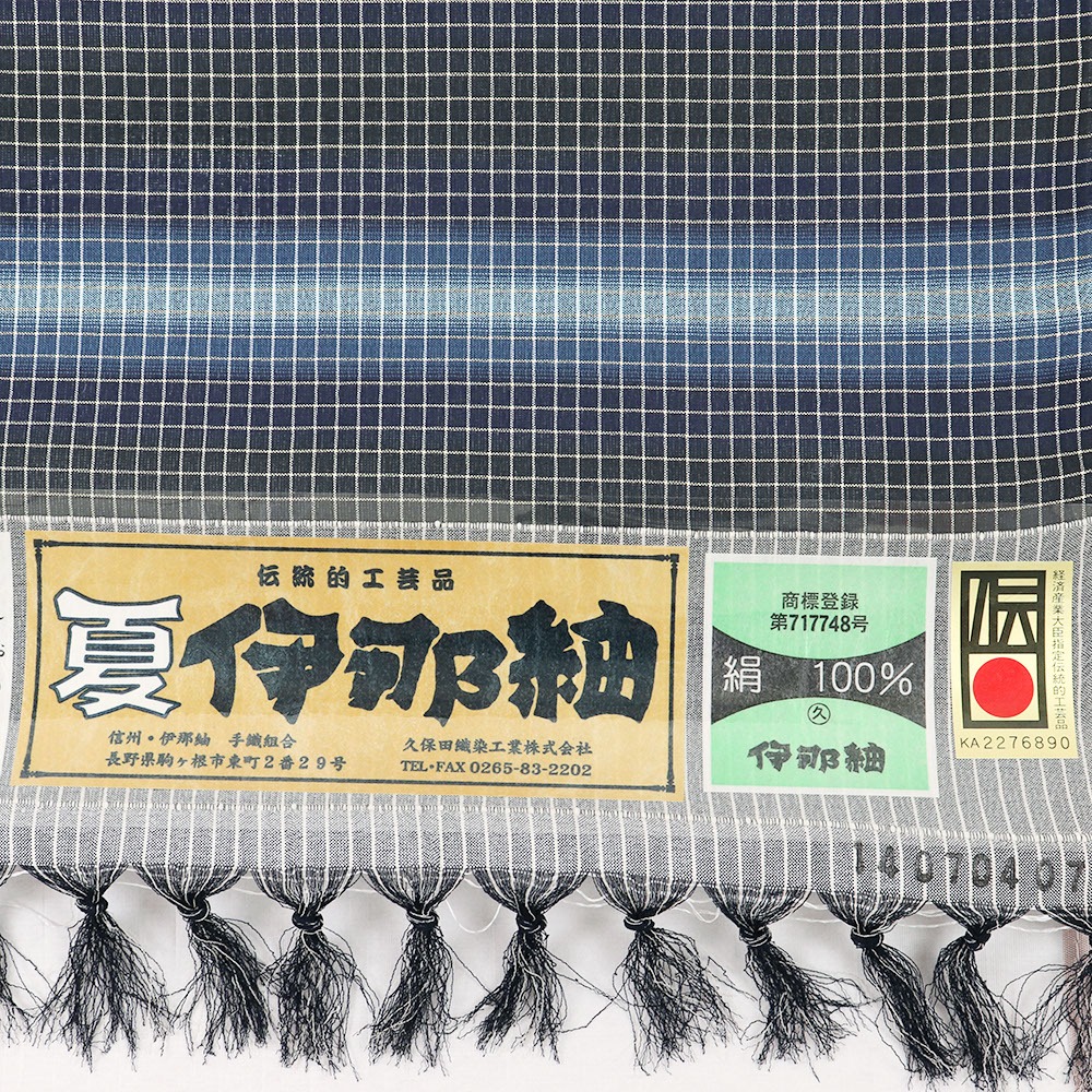 夏伊那紬(格子に横段ぼかし)【久保田織染】
