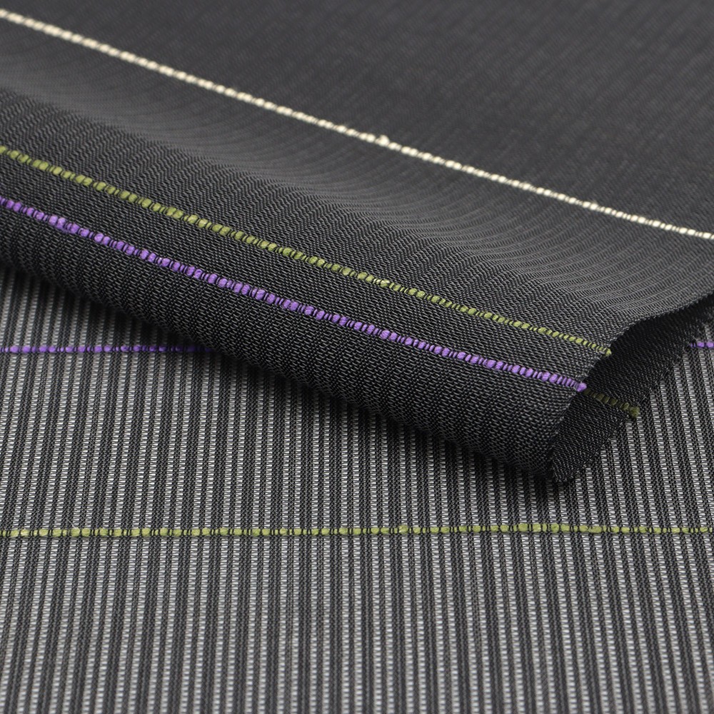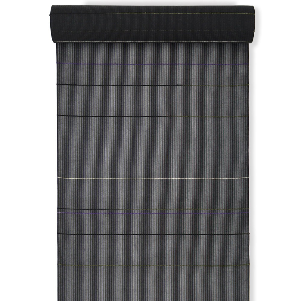 無地場に通るスッキリとした横縞が引き締まった印象に。小物合わせはもちろん、透け見せさせる襦袢選びも楽しめます。