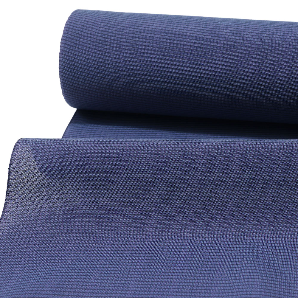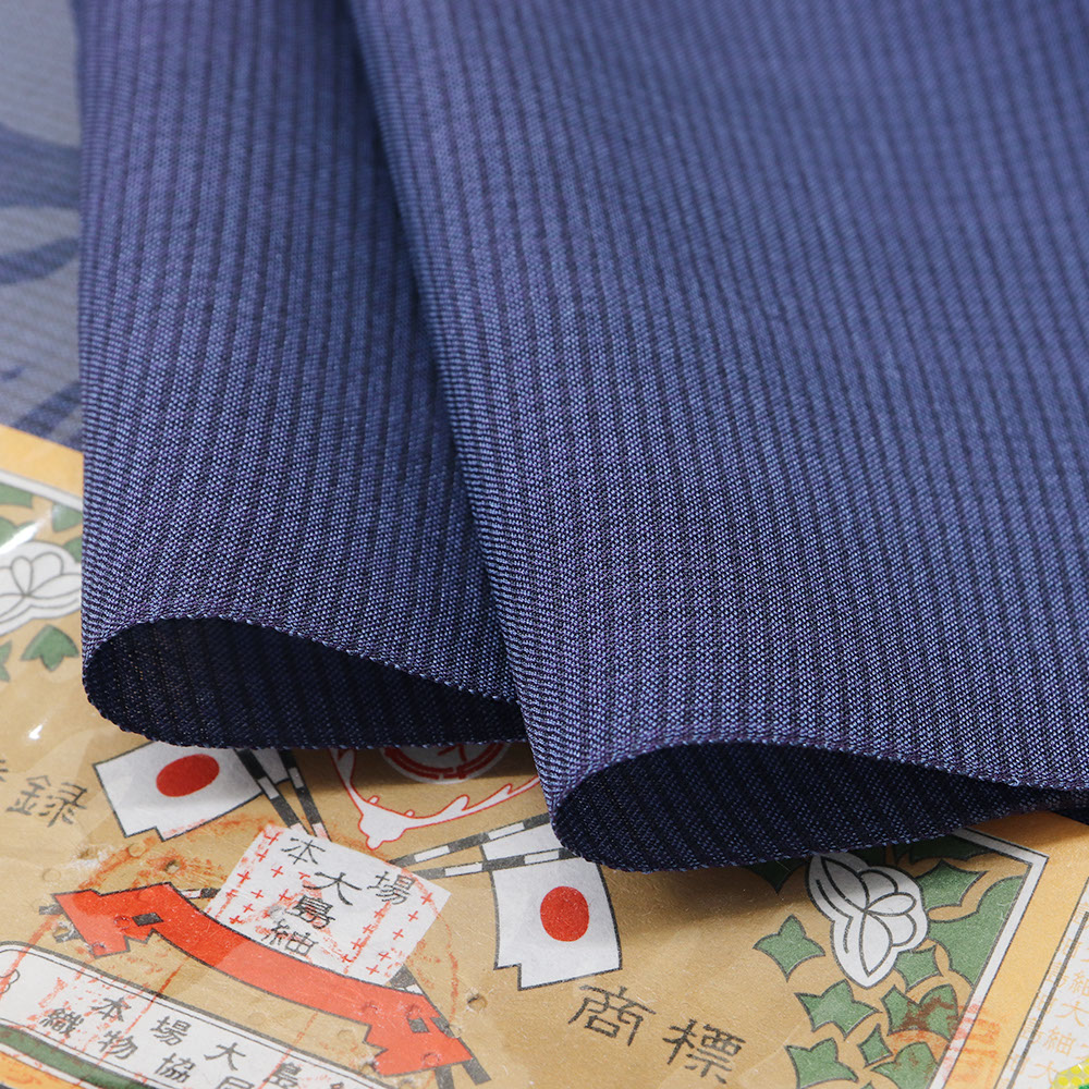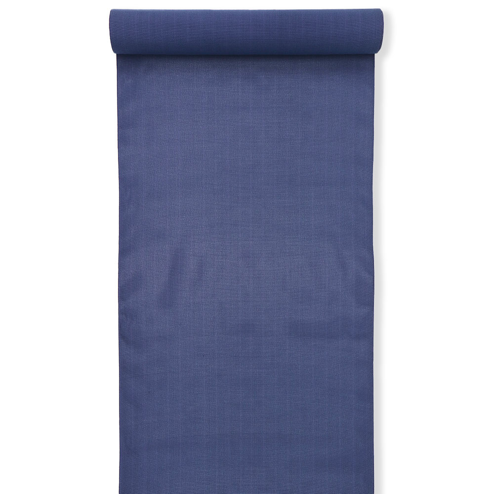 強く撚りをかけた糸で織り上げた低密度で控えめな透け感をもつ夏大島。鮮やかな青に、微かに縞模様が織り上げられた繊細なデザインの一枚です。遠目からは無地に見えるほどの控えめさで、幅広い帯合わせができる柄行き。無地色の帯で着姿を引き締めるもよし、柄物でモダンに合わせるもよし、コーディネートを考える時間も楽しそうです。
