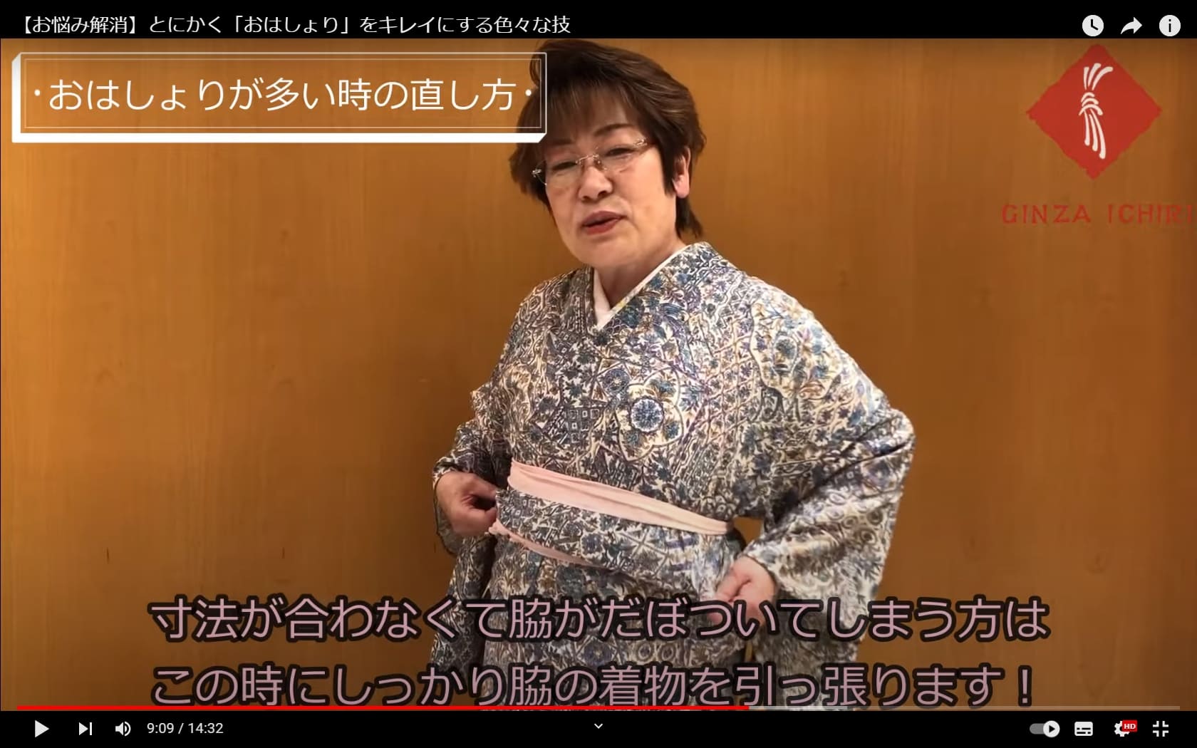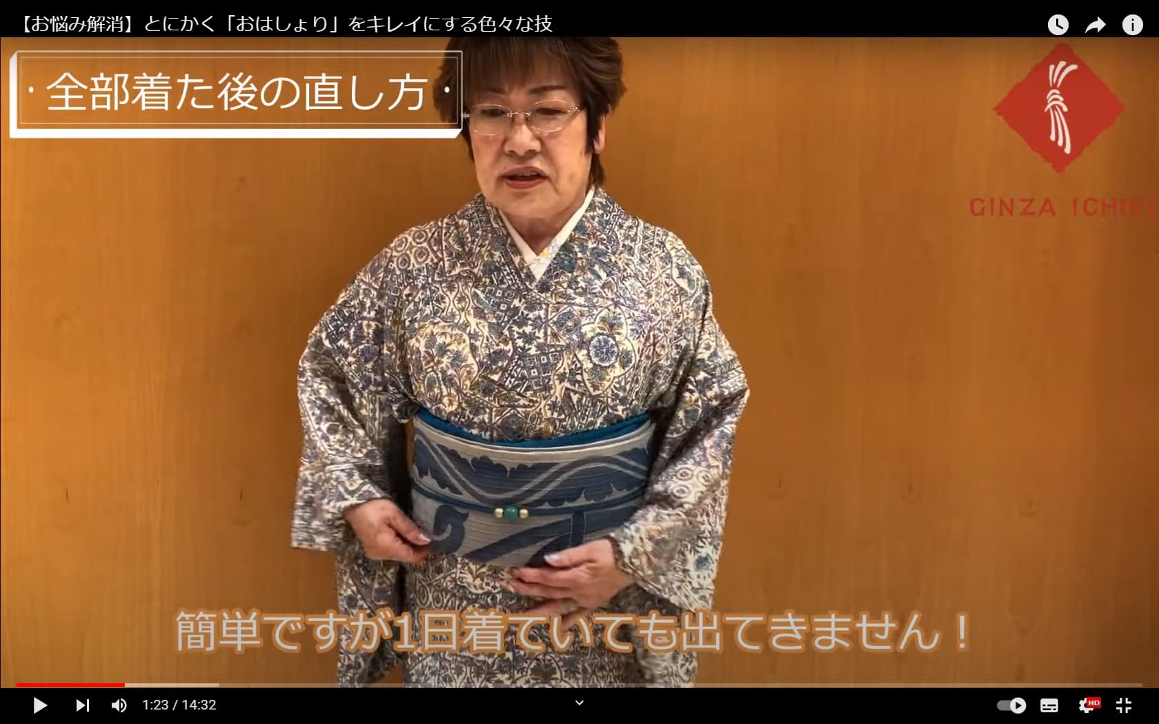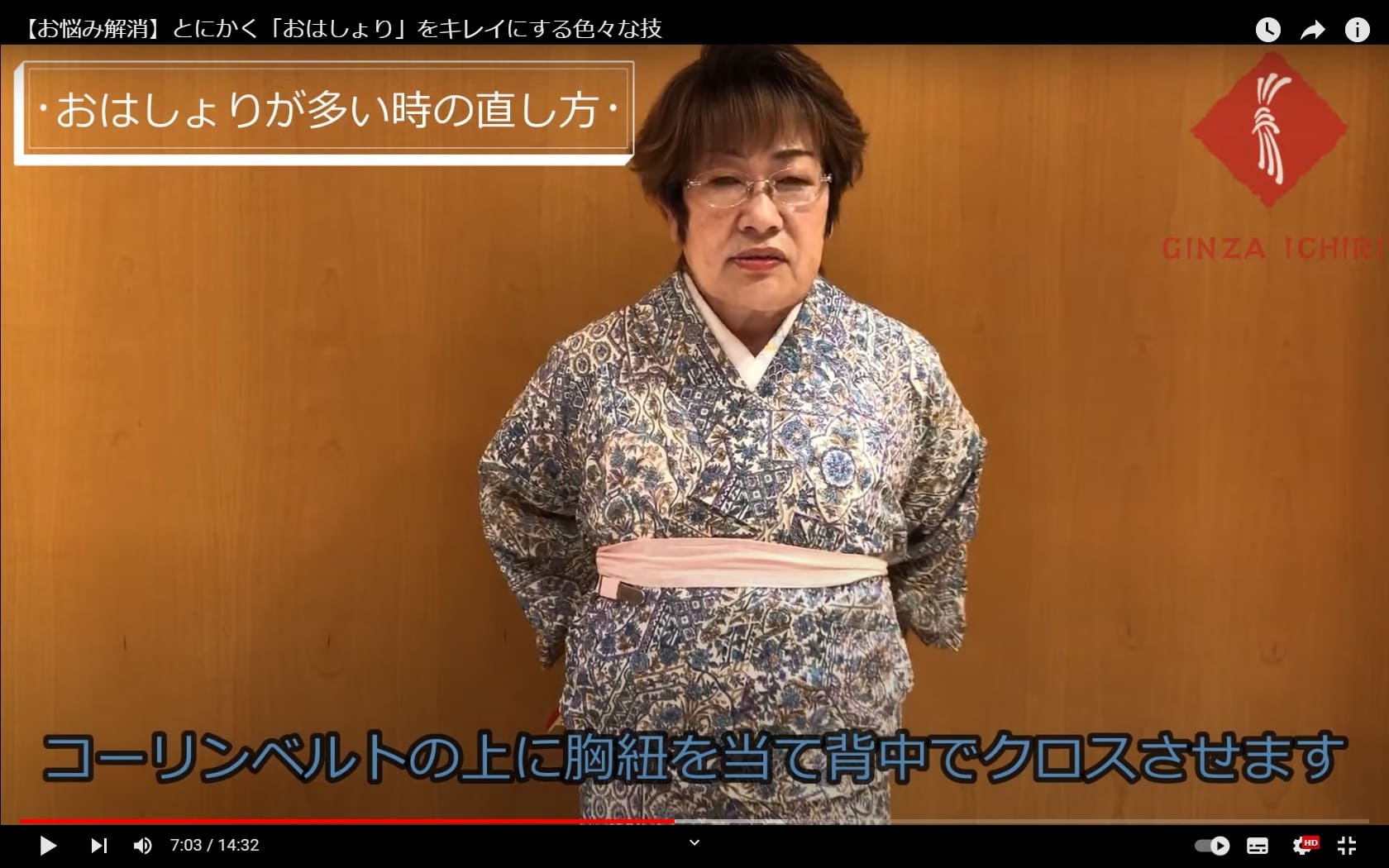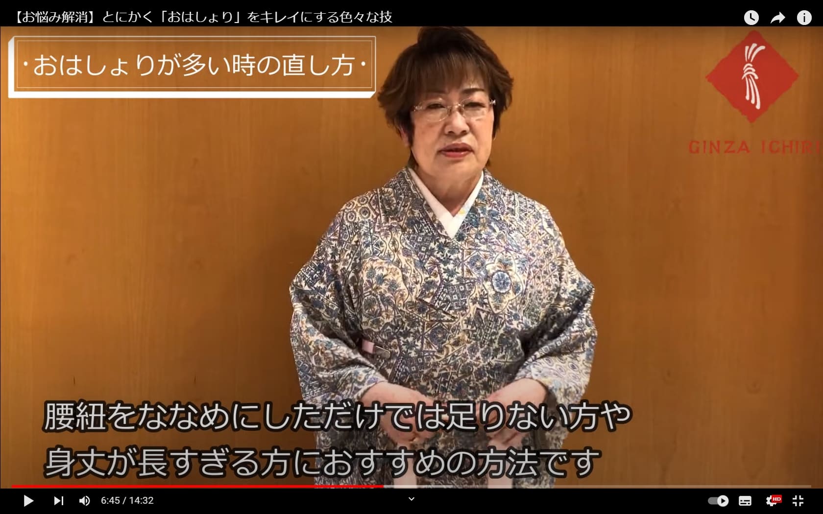 今日は皆さん、おはしょりのお悩みが多い方が多いみたいで、おはしょりがダボついちゃう方、脇がなかなか揃わなくてゴロゴロしちゃう方、短かったり長かったり、いろんなお悩みがあるようですね。それについて、少しずつやってみたいと思います。最後まで見てくださいね。