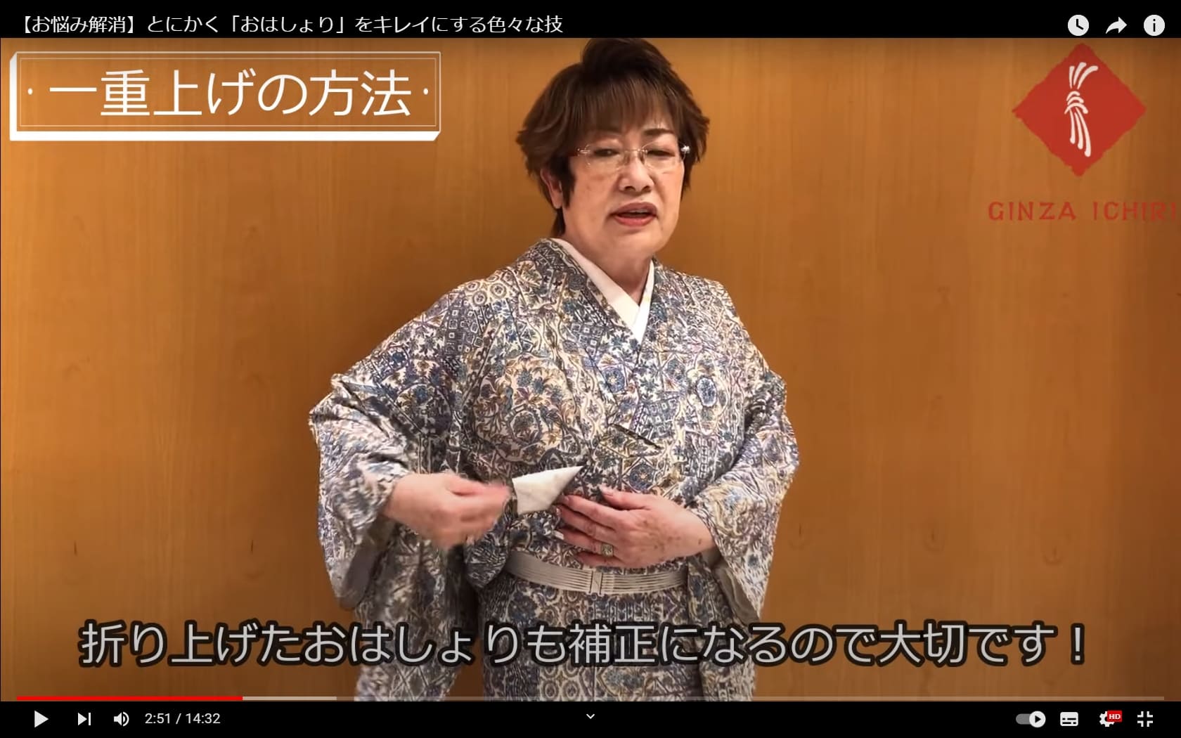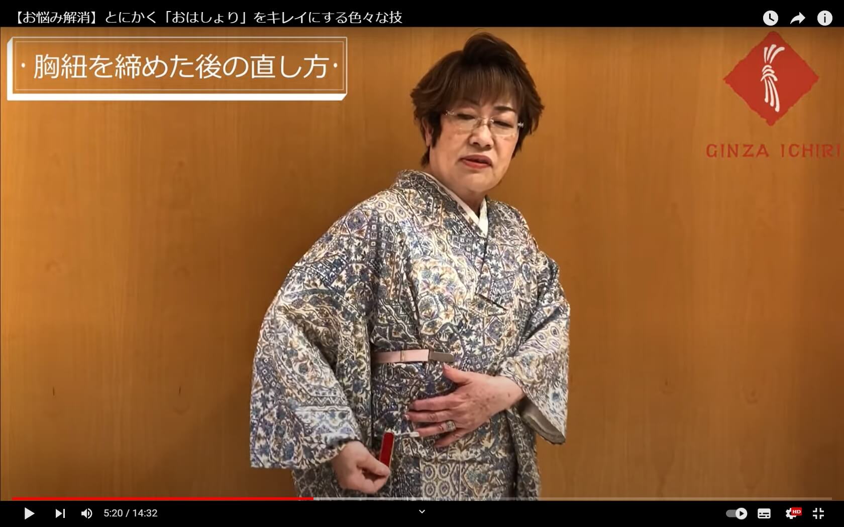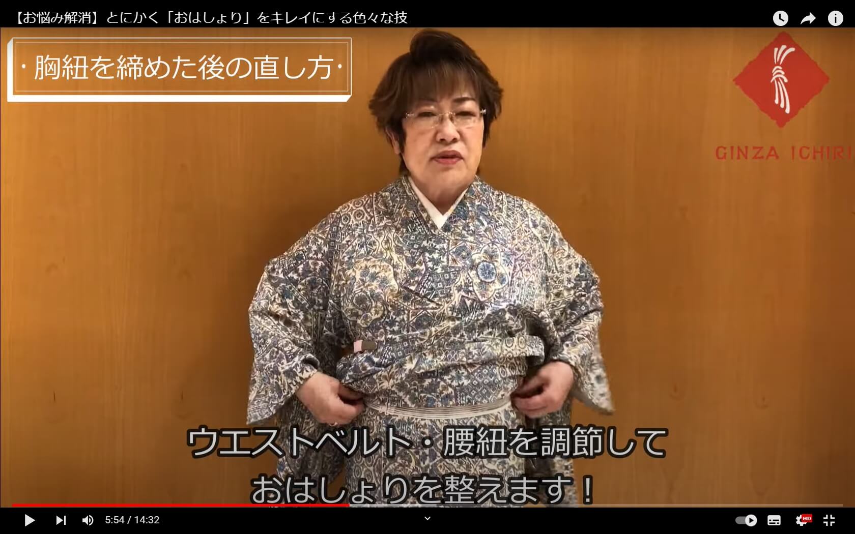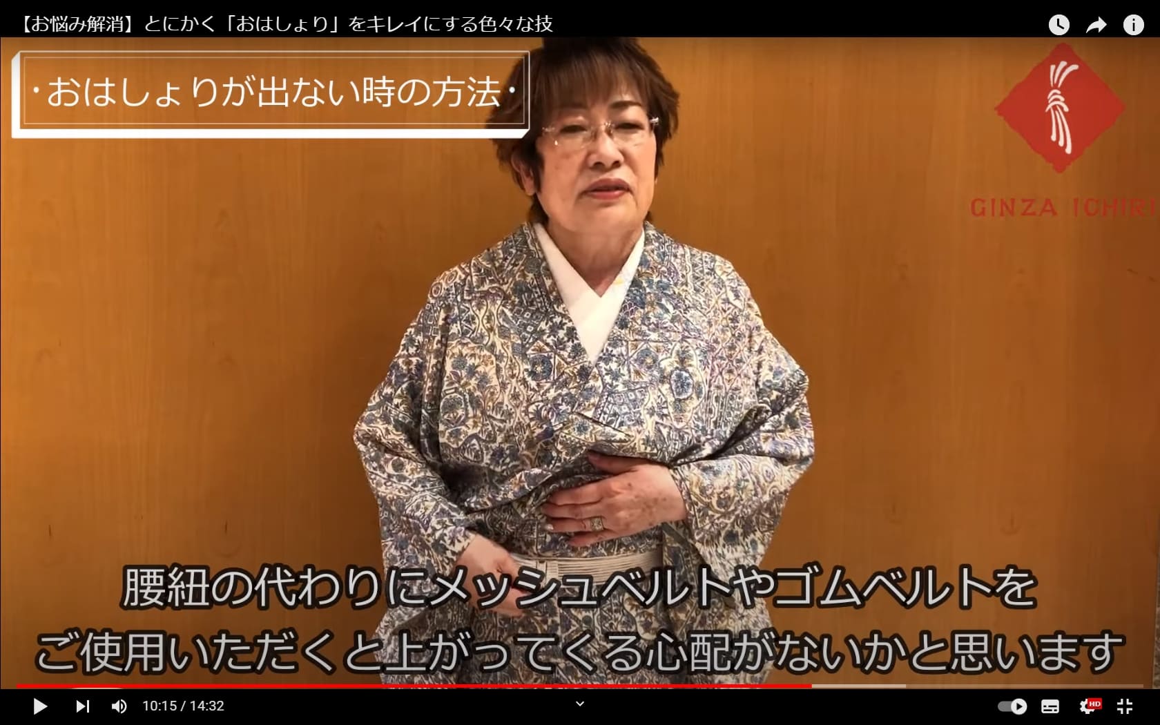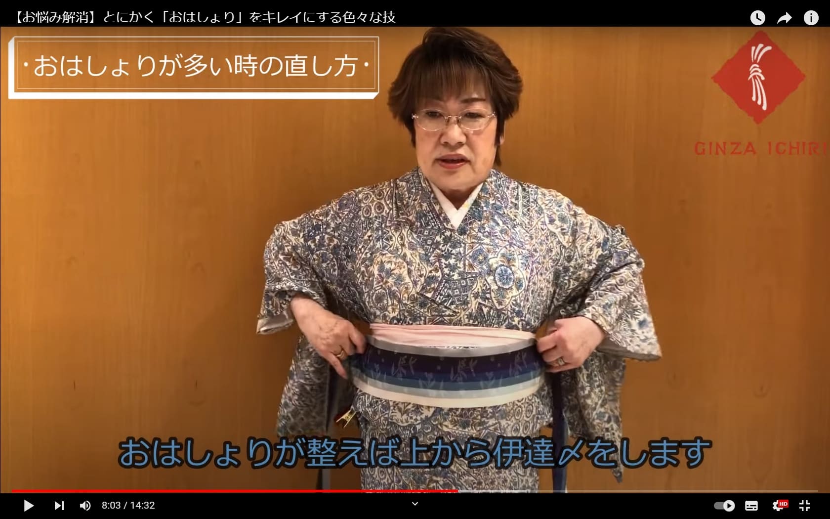 今日は皆さん、おはしょりのお悩みが多い方が多いみたいで、おはしょりがダボついちゃう方、脇がなかなか揃わなくてゴロゴロしちゃう方、短かったり長かったり、いろんなお悩みがあるようですね。それについて、少しずつやってみたいと思います。最後まで見てくださいね。