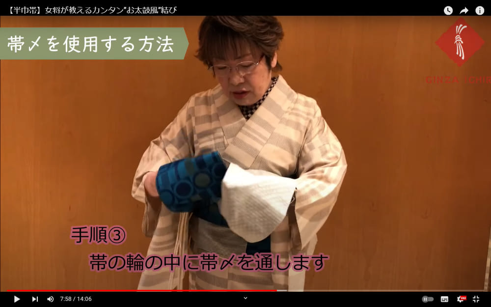 【半巾帯】女将が教えるカンタン”お太鼓風”結び